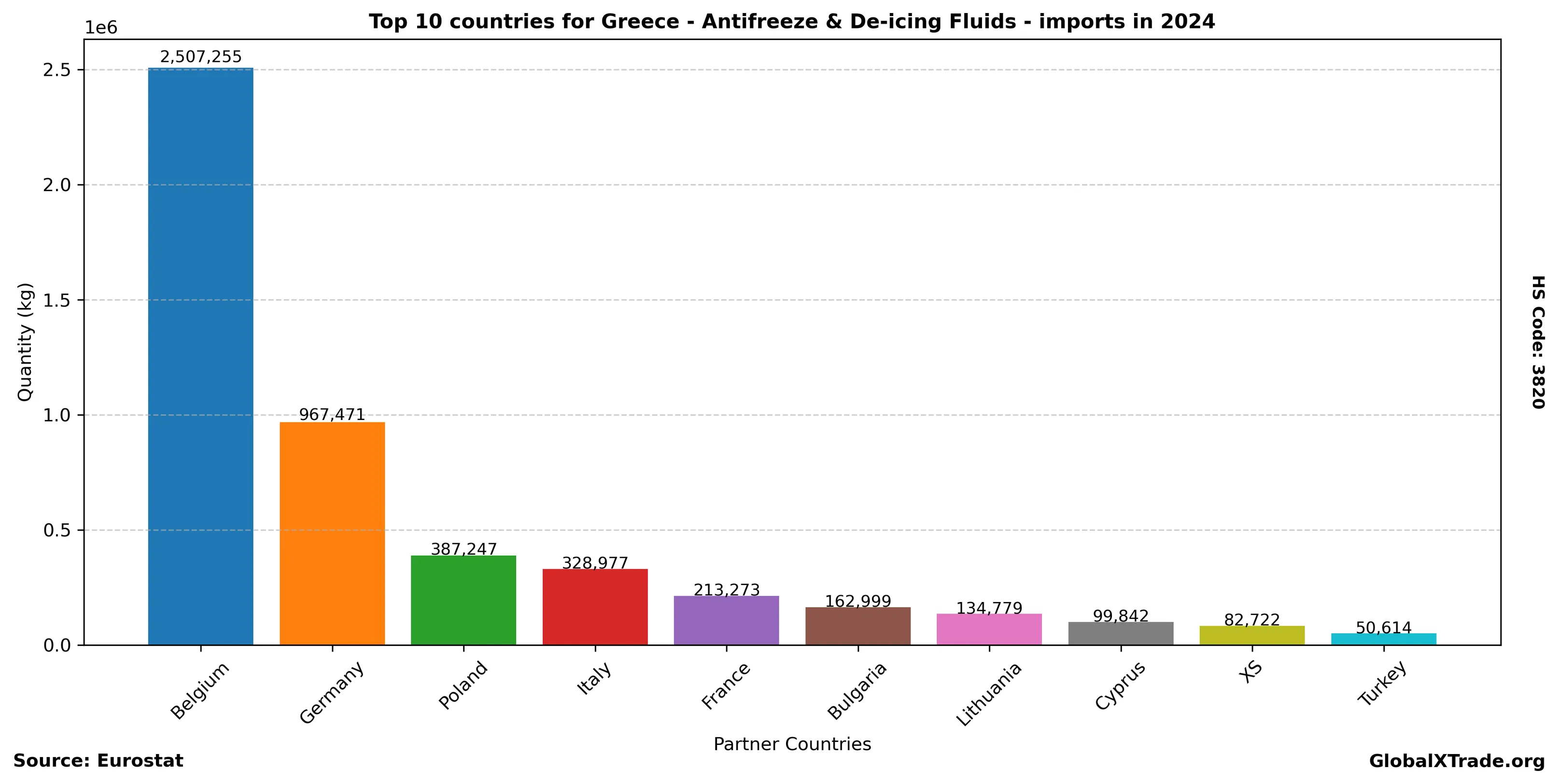• Greek imports of antifreeze and de-icing fluids rose 12% year-over-year in the first six months, driven by seasonal demand.