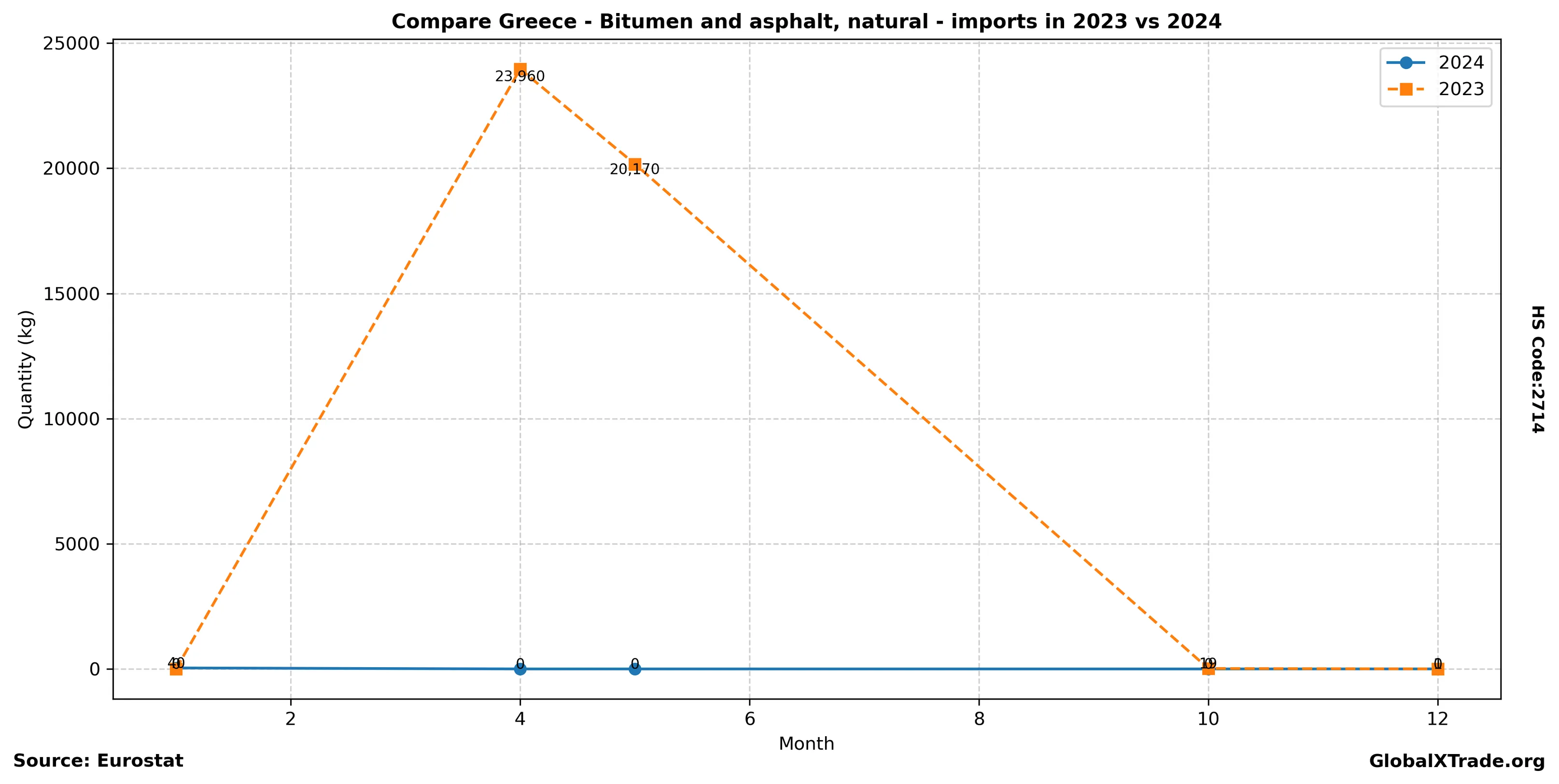 Greece “Bitumen and asphalt, natural” Imports in 2024