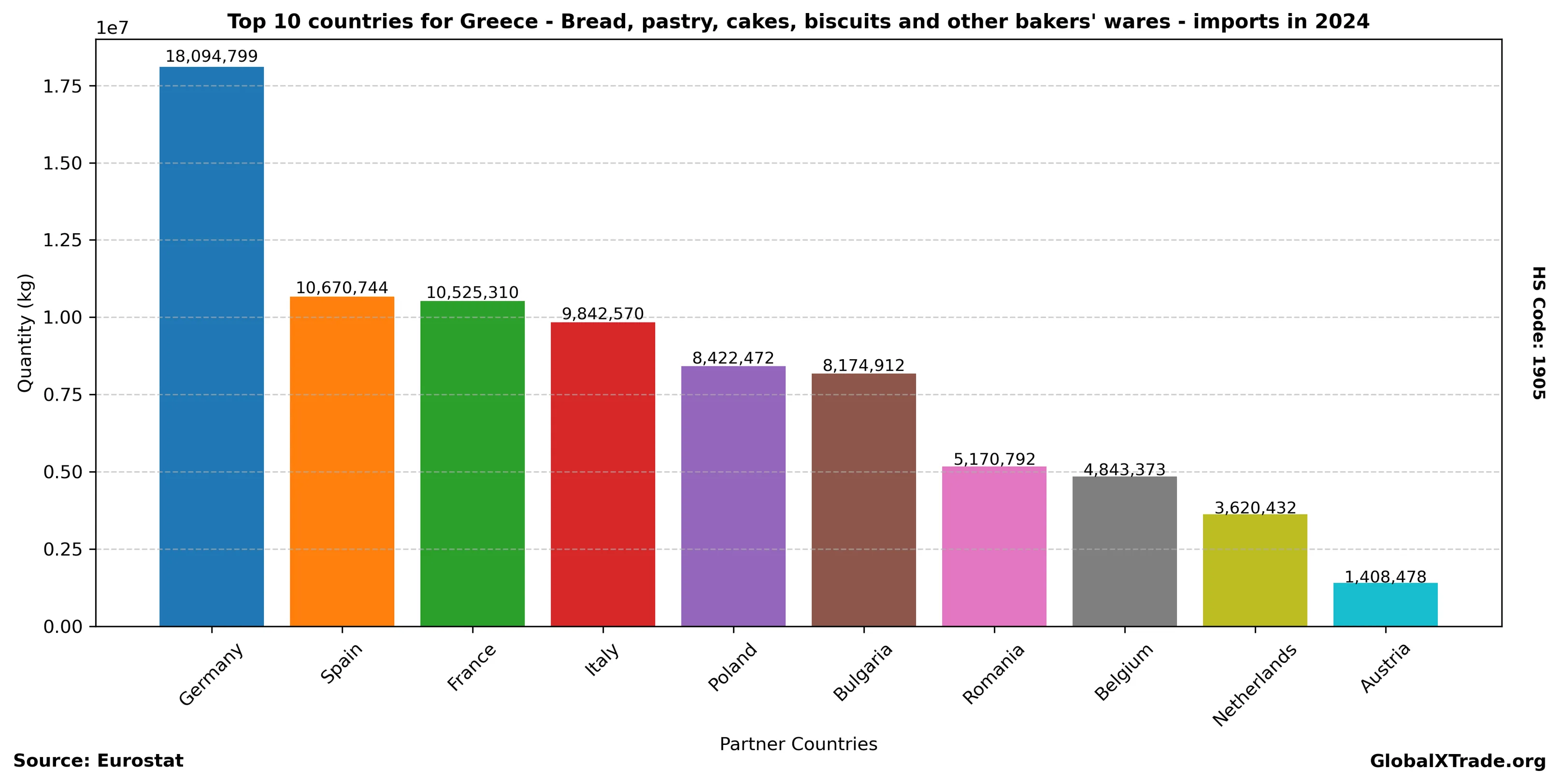 • Greek imports of baked goods rose 4.5% in June, outpacing the 2.3% increase in total imports.