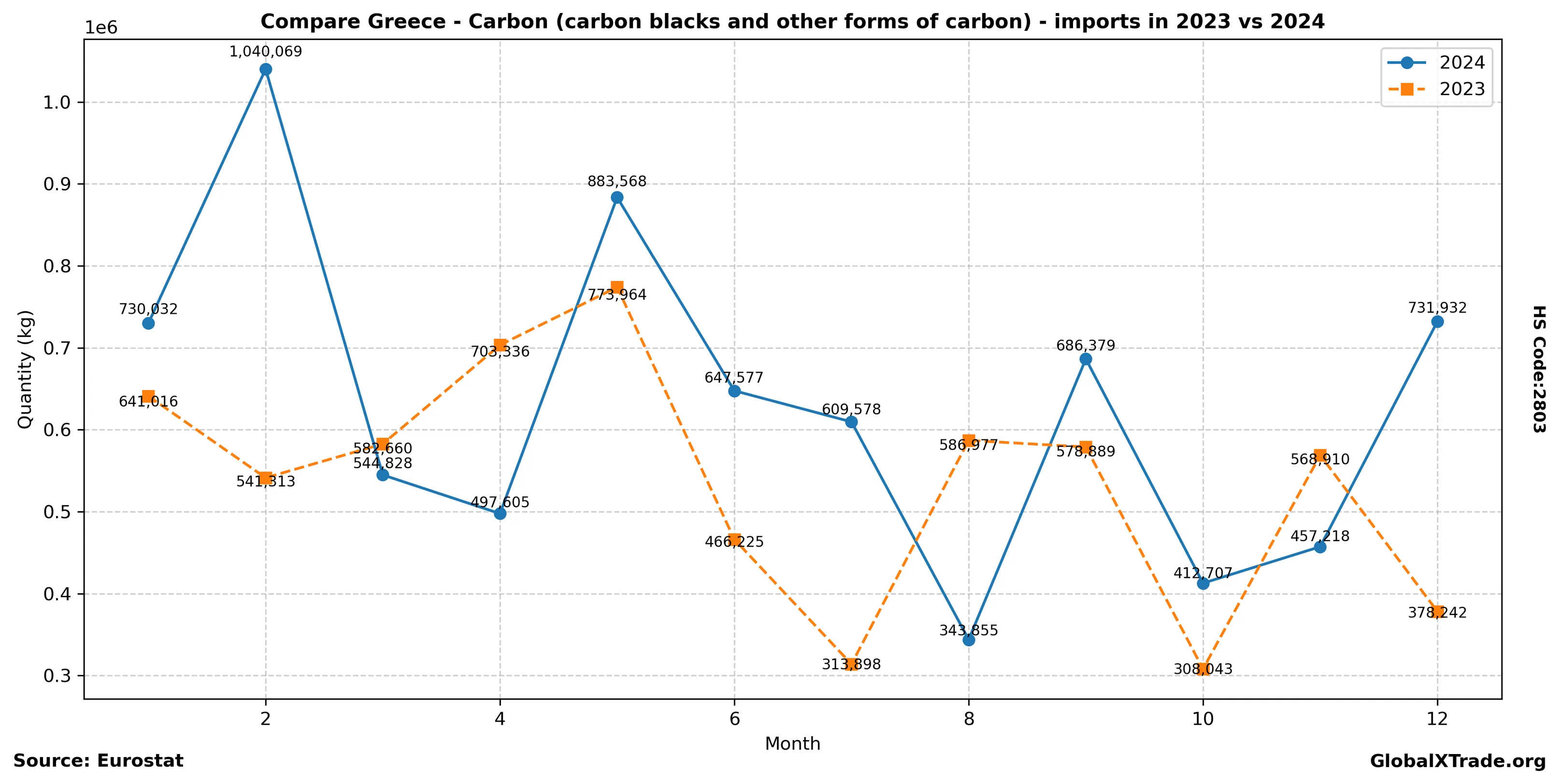 Greek imports of carbon materials surged in June, driven by strong demand from the manufacturing sector. The increase is attributed to rising industrial activity, particularly in the automotive and construction industries. As a result, Greek manufacturers are increasing production to meet growing orders, leading to higher imports of essential raw materials like carbon black.