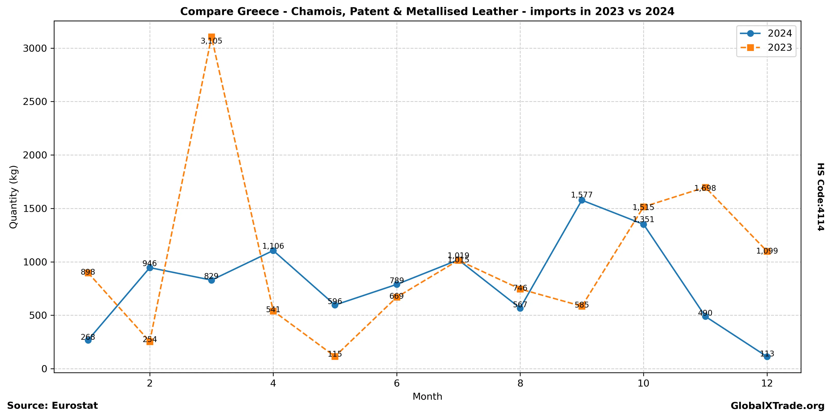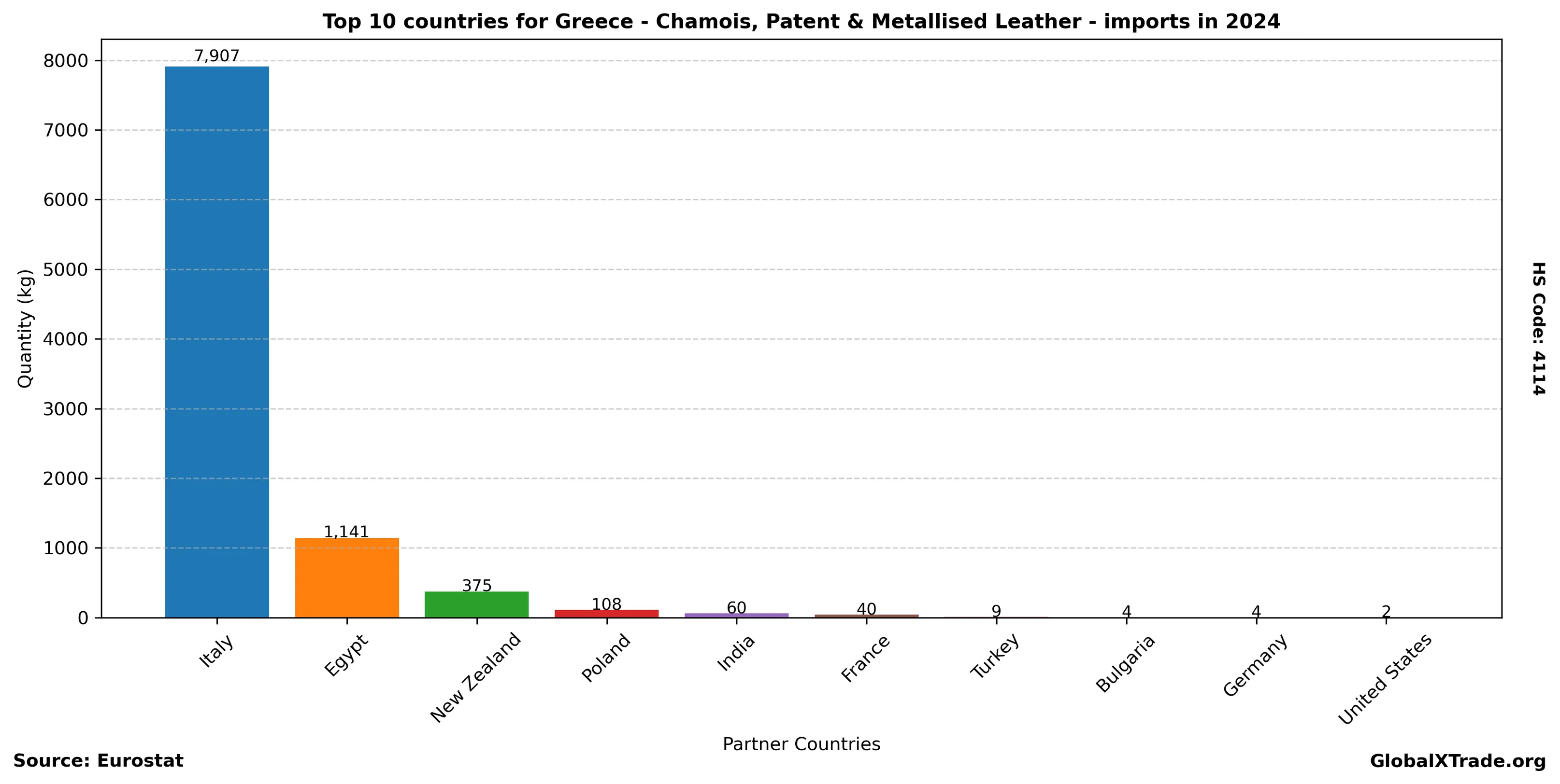 Greece “Chamois, Patent & Metallised Leather” Imports in 2024