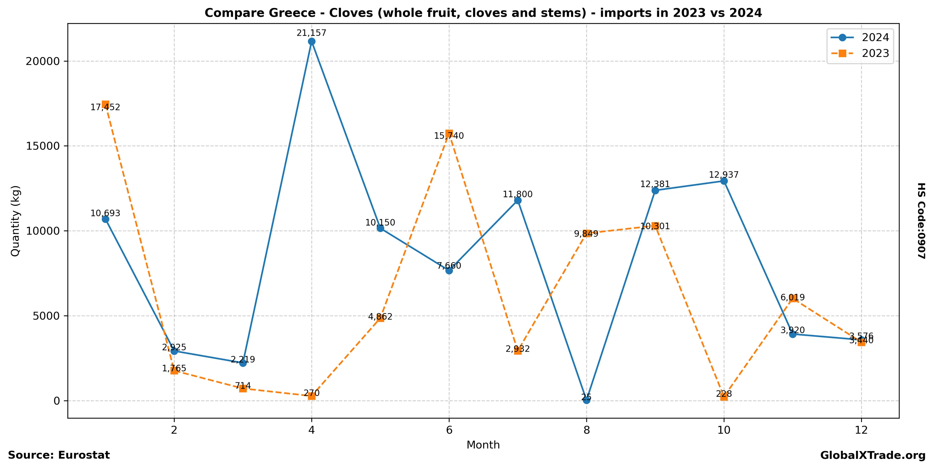 Greece “Cloves (whole fruit, cloves and stems)” Imports in 2024