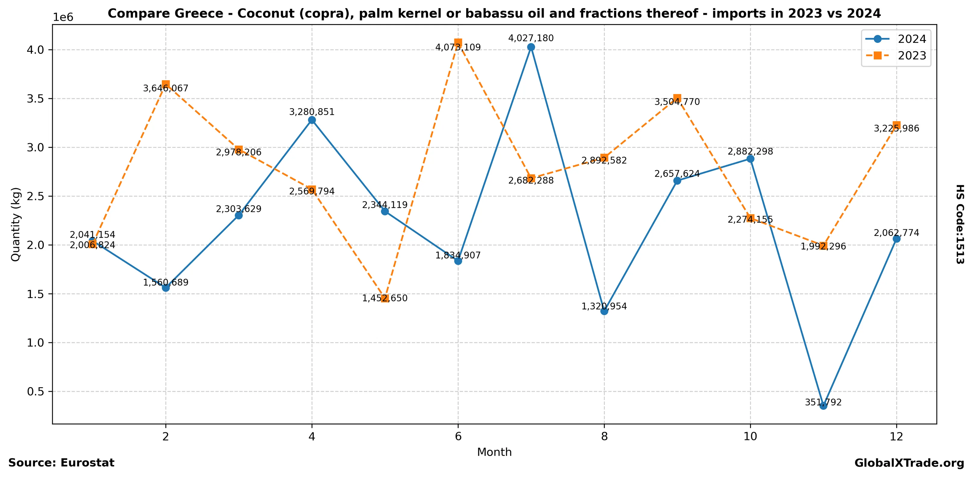 Greece’s imports of coconut oil continue to grow as the country’s tourism industry experiences a steady recovery. Strong demand from food manufacturers and hotels during the summer months drives up imports. However, global price fluctuations due to supply chain disruptions in major producing countries may impact prices in the coming quarters.