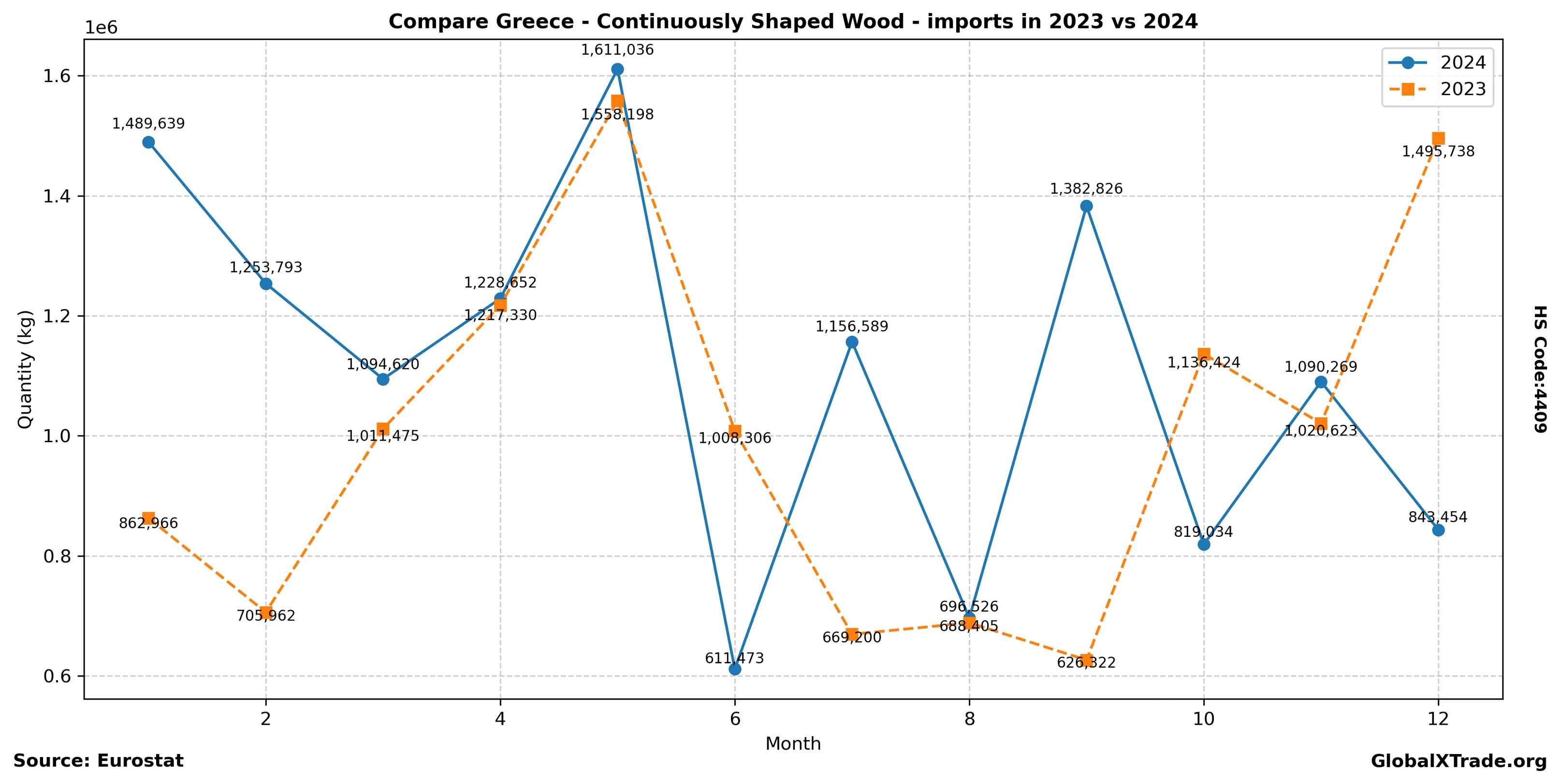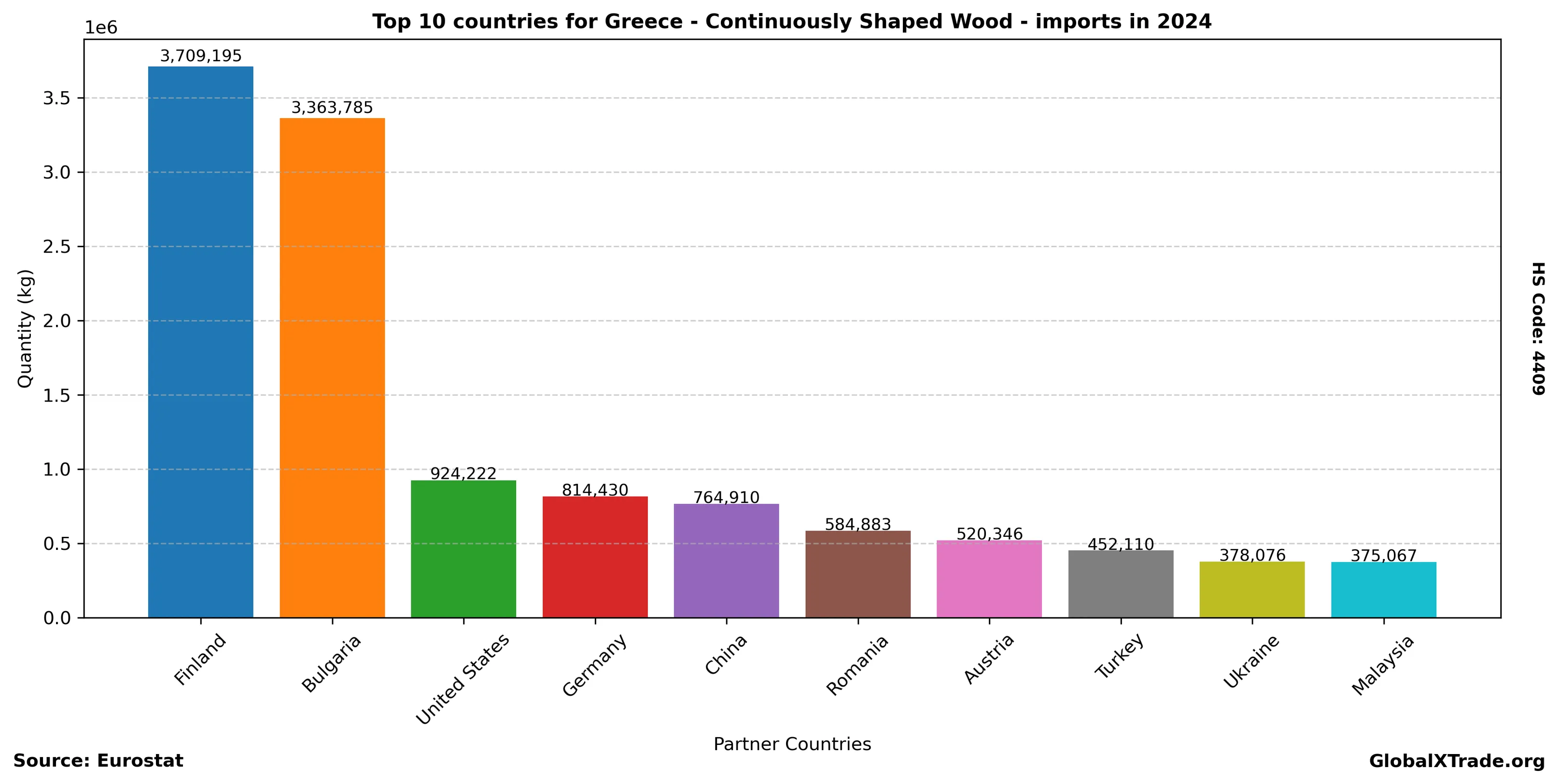 * Greek imports of continuously shaped wood (HS Code 4409) rose 12% year-on-year in the second quarter, driven by robust demand from the country’s construction sector.