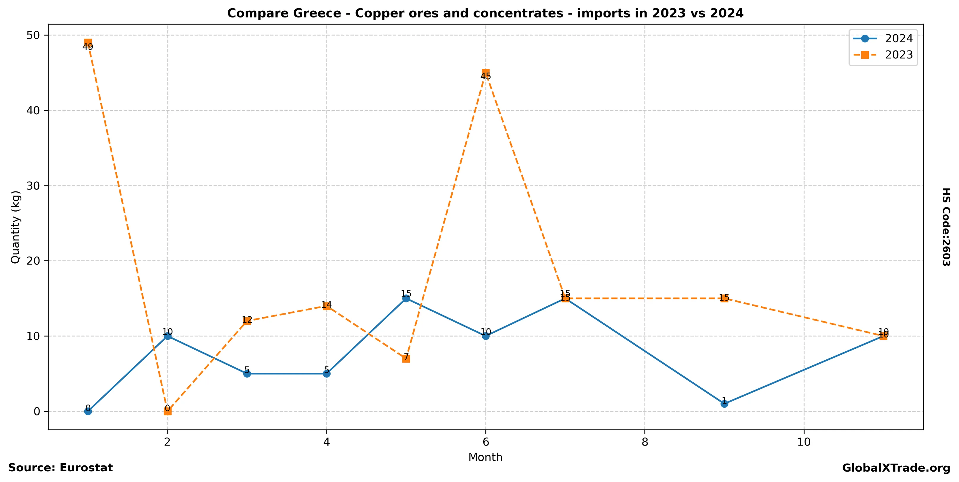 Greek copper ore imports rise as global demand picks up steam.