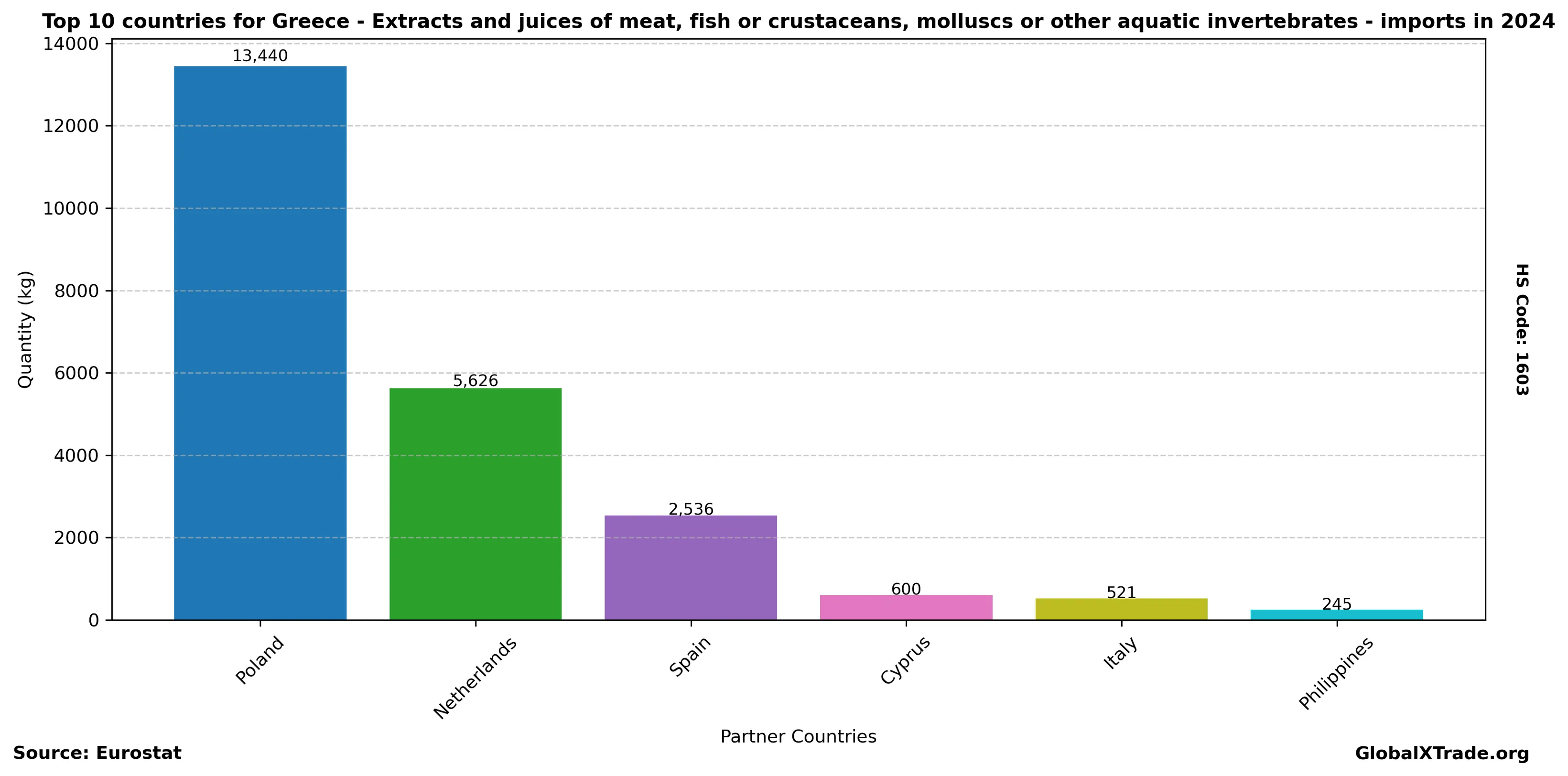 • Major suppliers include Turkey and Spain, which accounted for over 70% of Greece’s total imports in this category.