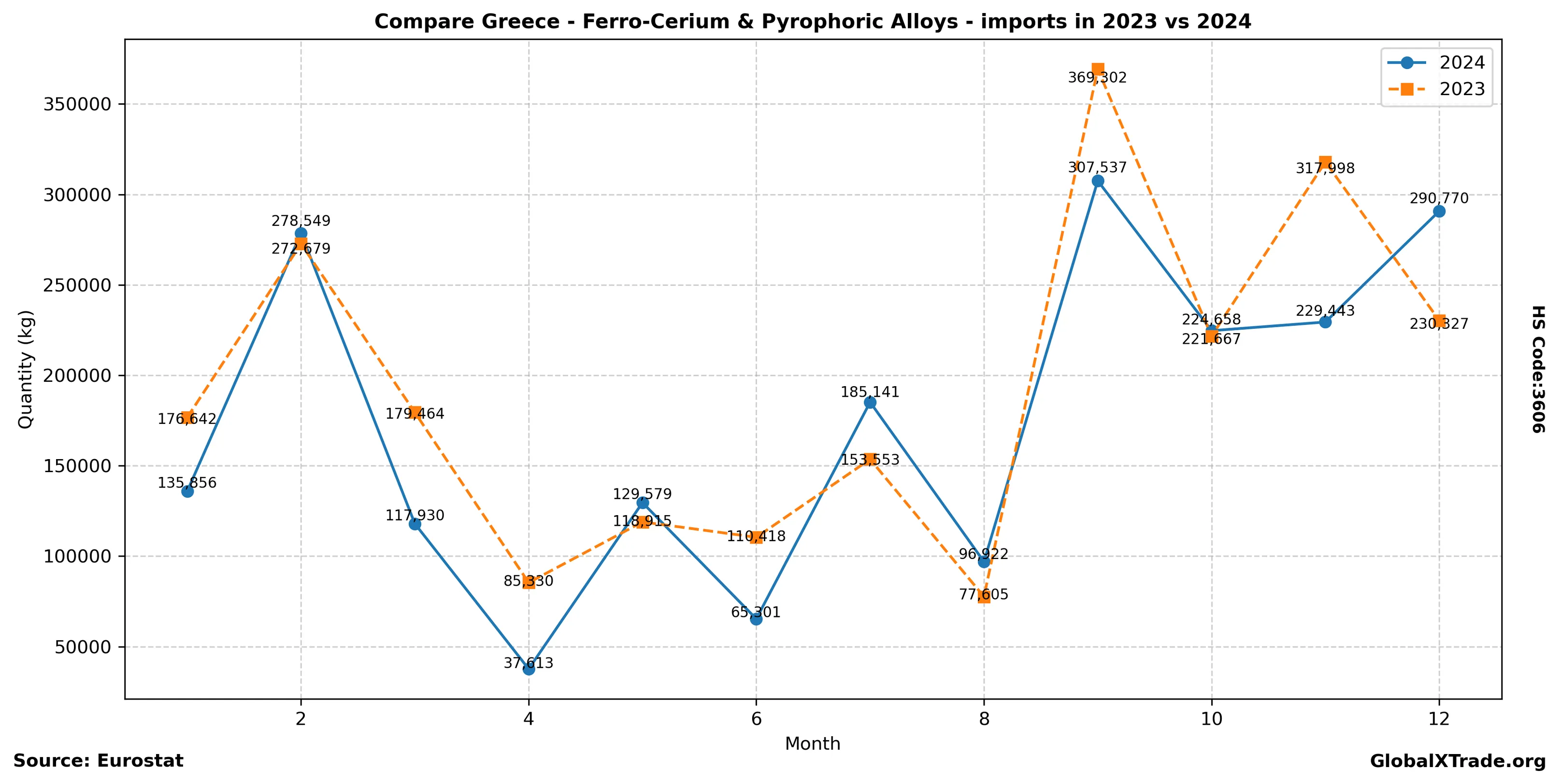 Greece “Ferro-Cerium & Pyrophoric Alloys” Imports in 2024