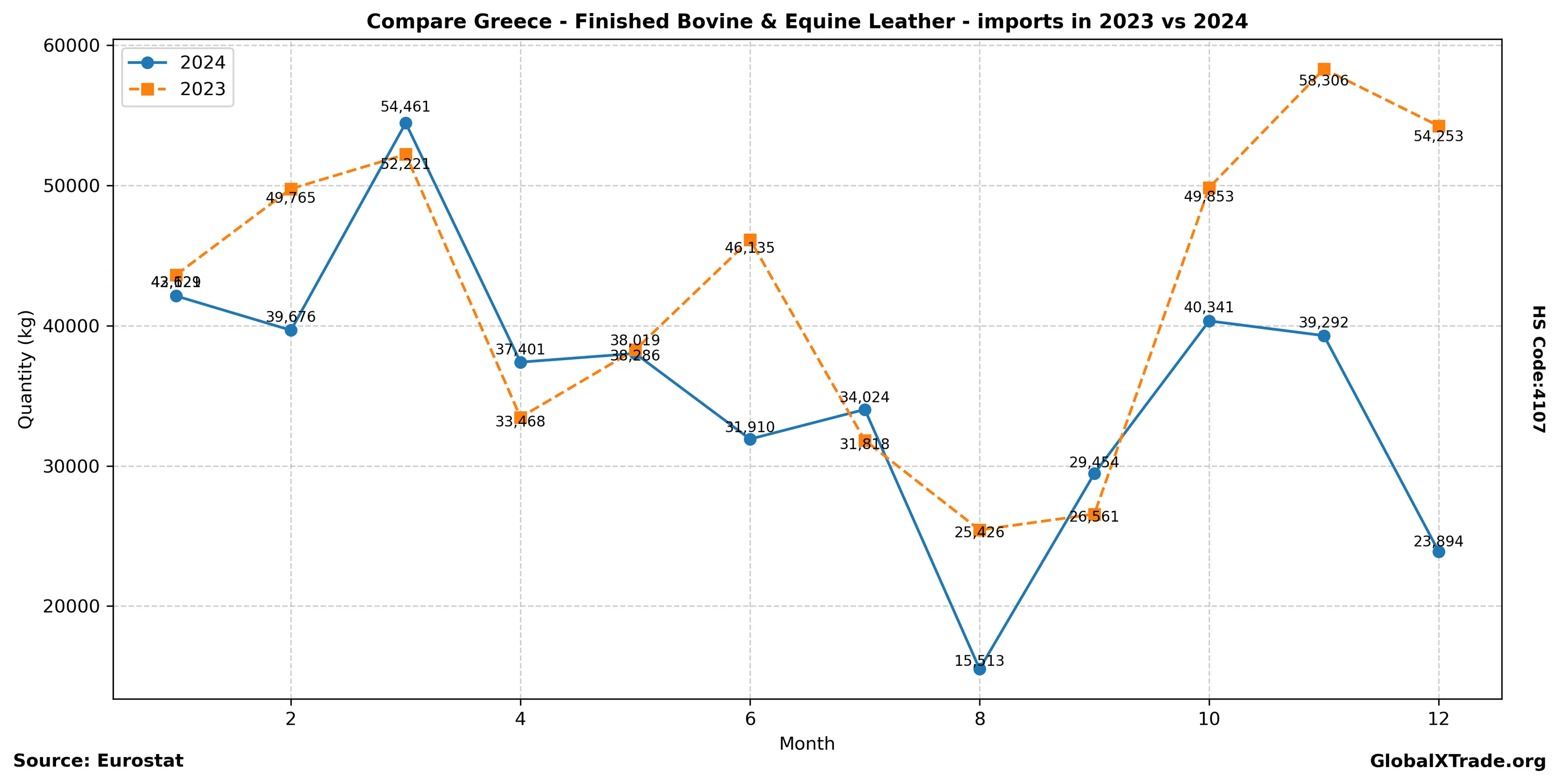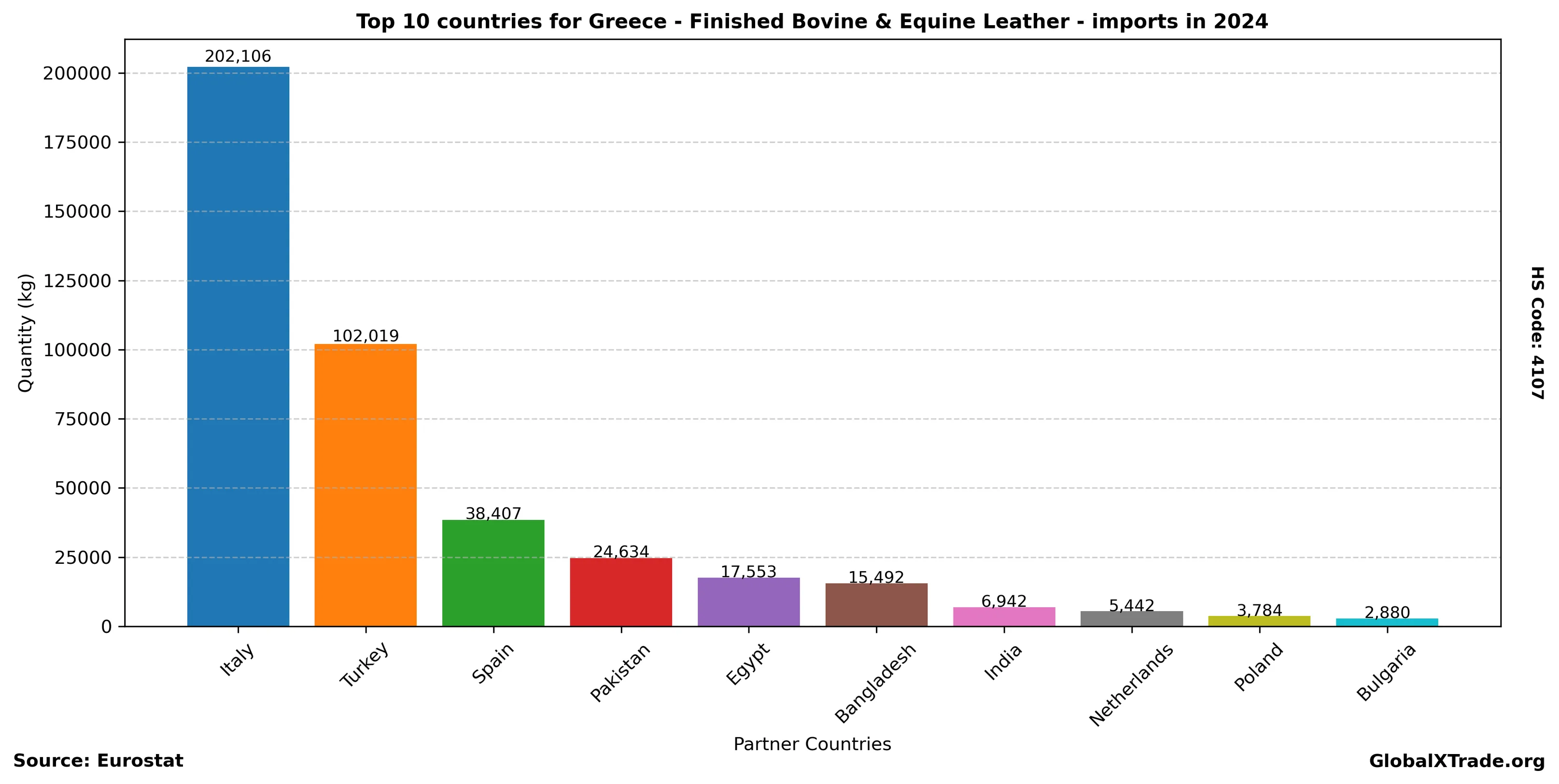 Greece’s imports of finished bovine and equine leather continue to grow, driven by strong demand in the global fashion industry. The country’s leather goods manufacturers are benefiting from increased exports to major markets such as Europe and the United States. However, rising raw material costs may impact profit margins for domestic producers.