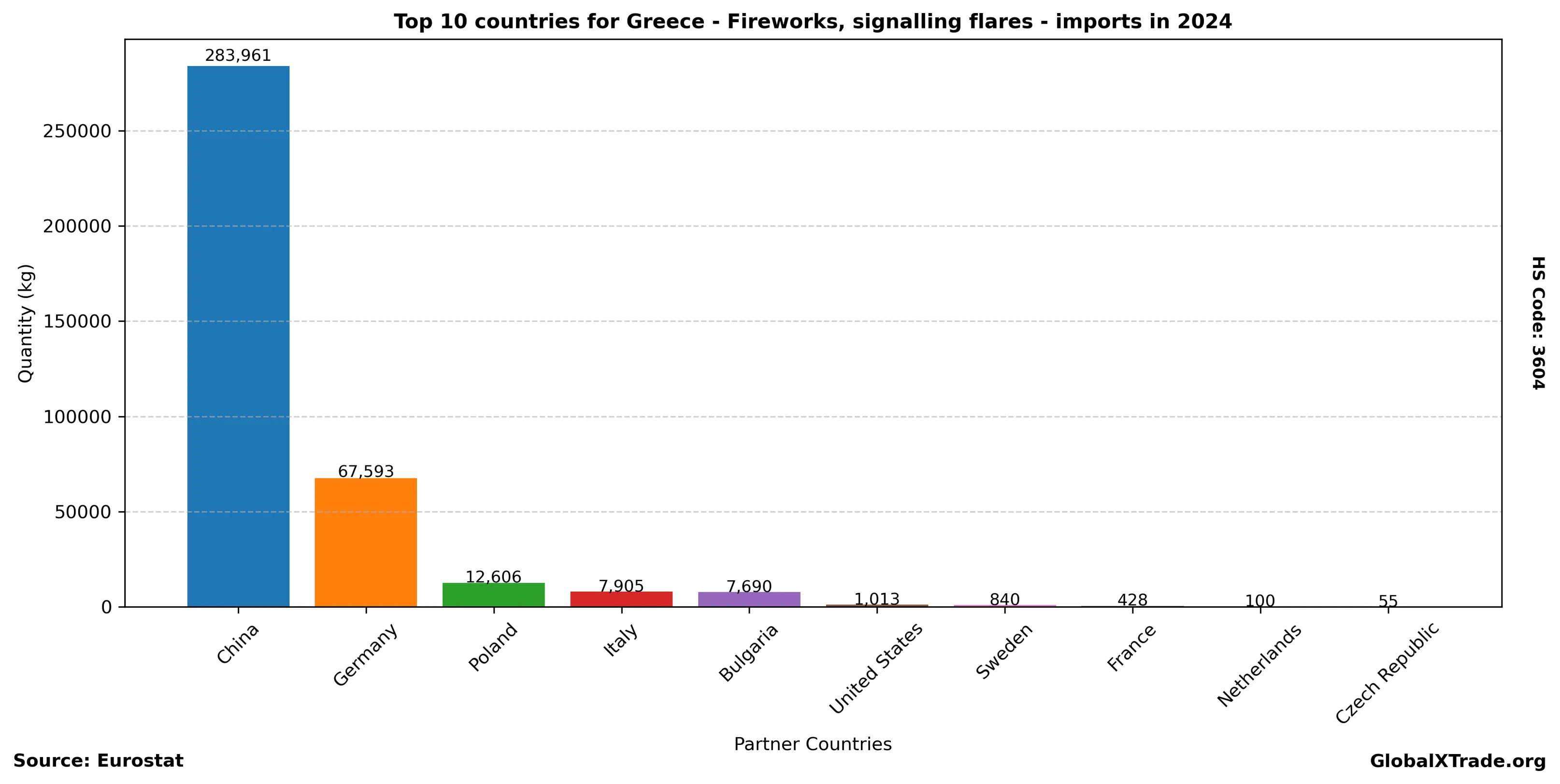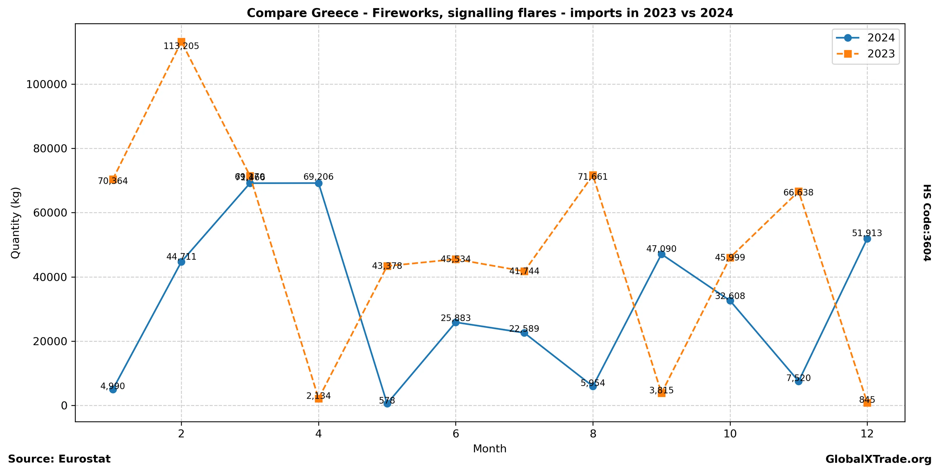 Greece “Fireworks, signalling flares” Imports in 2024