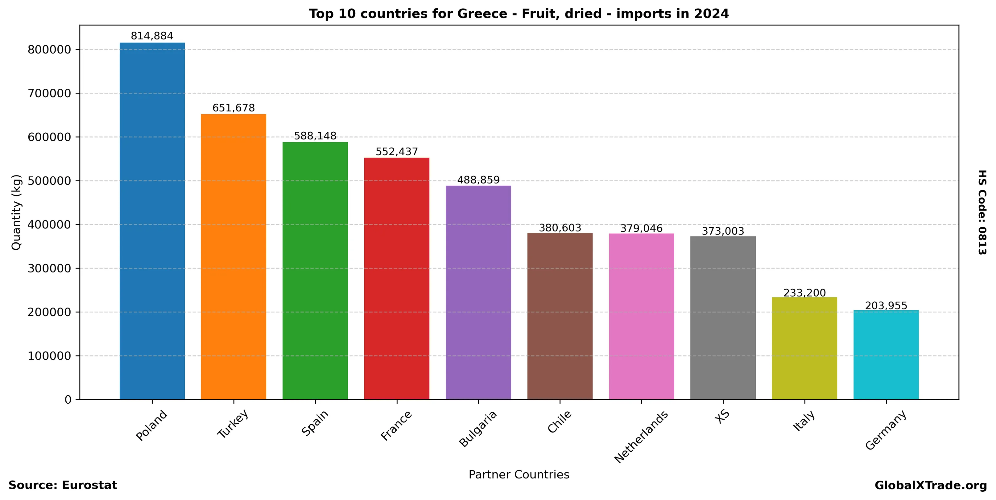 • Greek imports of dried fruits rose by 4% year-on-year to 5,300 tonnes in the second quarter.