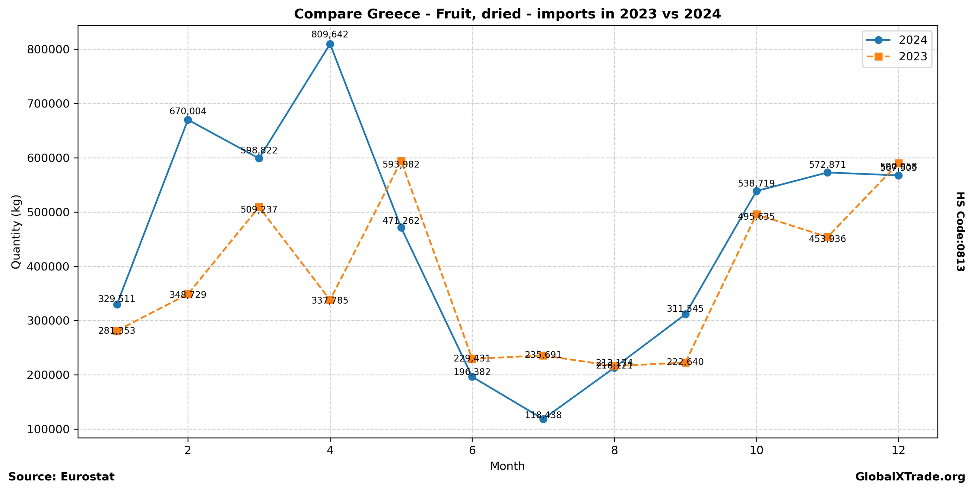 Greek dried fruit imports have shown a modest recovery in the second quarter, driven by higher demand from the country’s food processing industry. The warmer weather in Q2 is also expected to boost consumer demand for dried fruits as a healthier snack option, potentially leading to further increases in imports over the coming months.