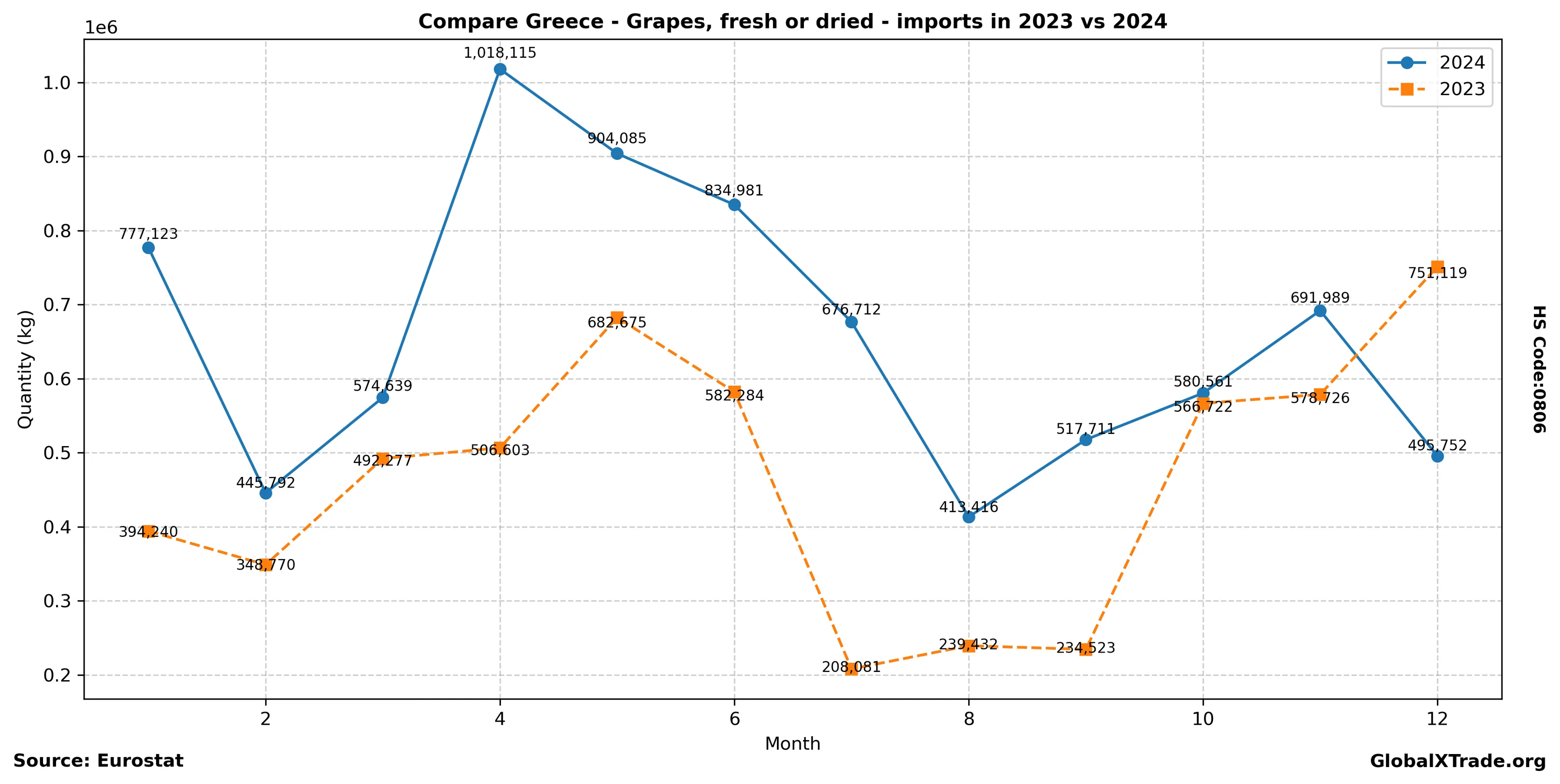 • Greece has seen a notable increase in fresh grape imports from non-EU countries, including Chile and South Africa.