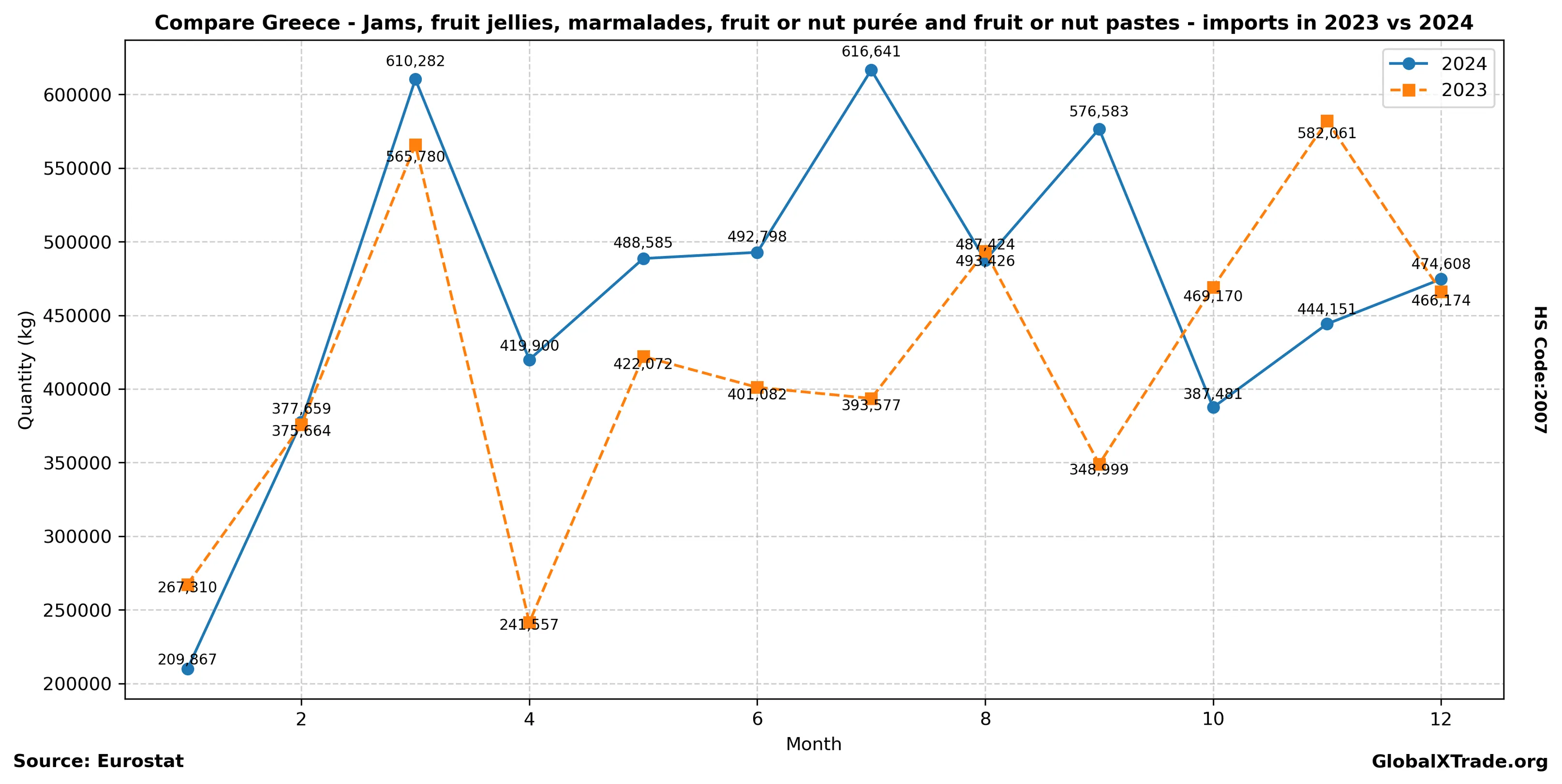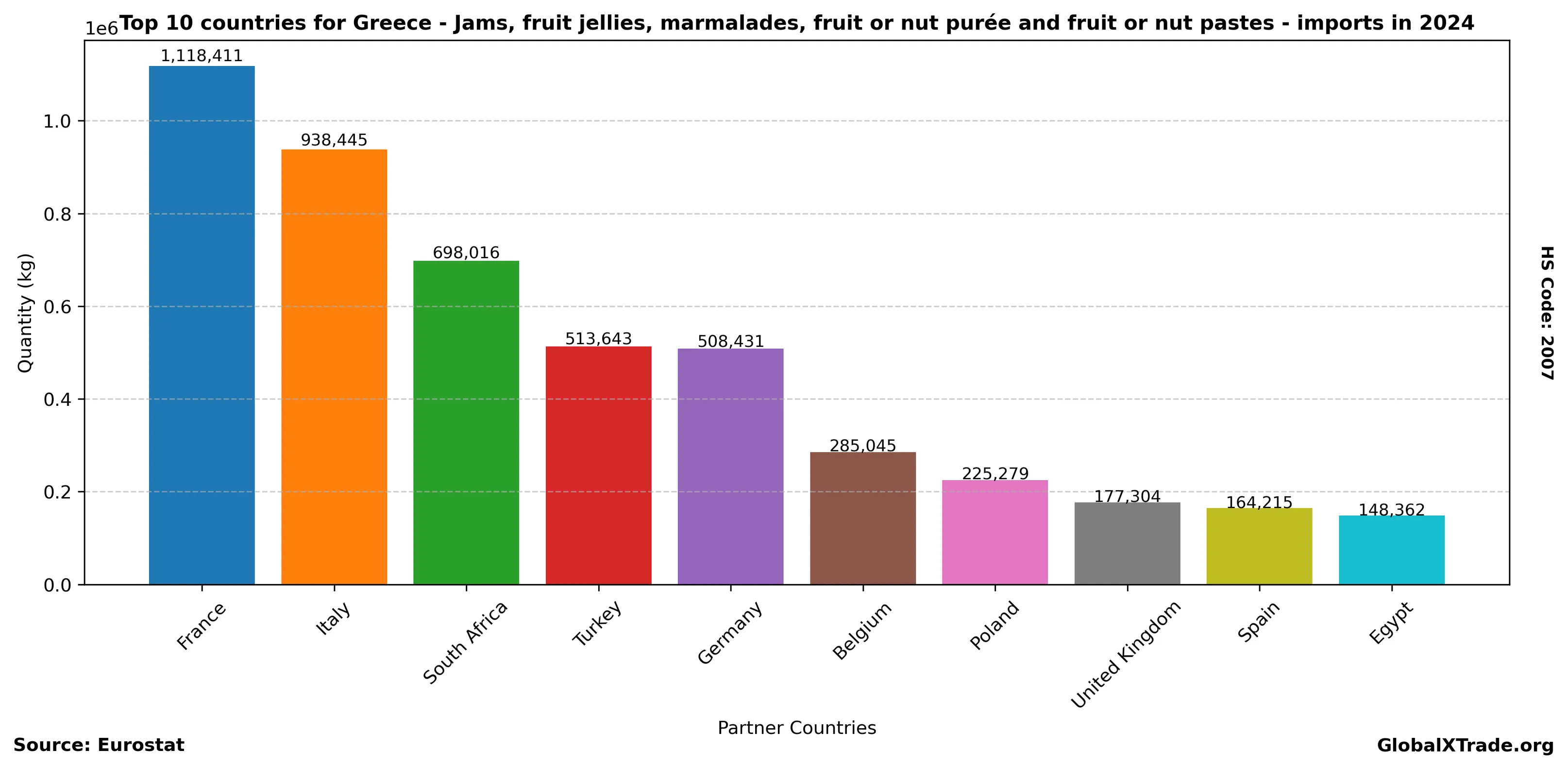 Greek imports of jams, fruit jellies, and marmalades increased significantly in June, driven by rising consumer demand for summer desserts. The warmer weather has led to an uptick in sales of frozen yogurt and ice cream, which are often topped with these sweet spreads. As a result, suppliers such as Turkey and Spain have seen their exports to Greece increase, taking advantage of the growing demand for these products.