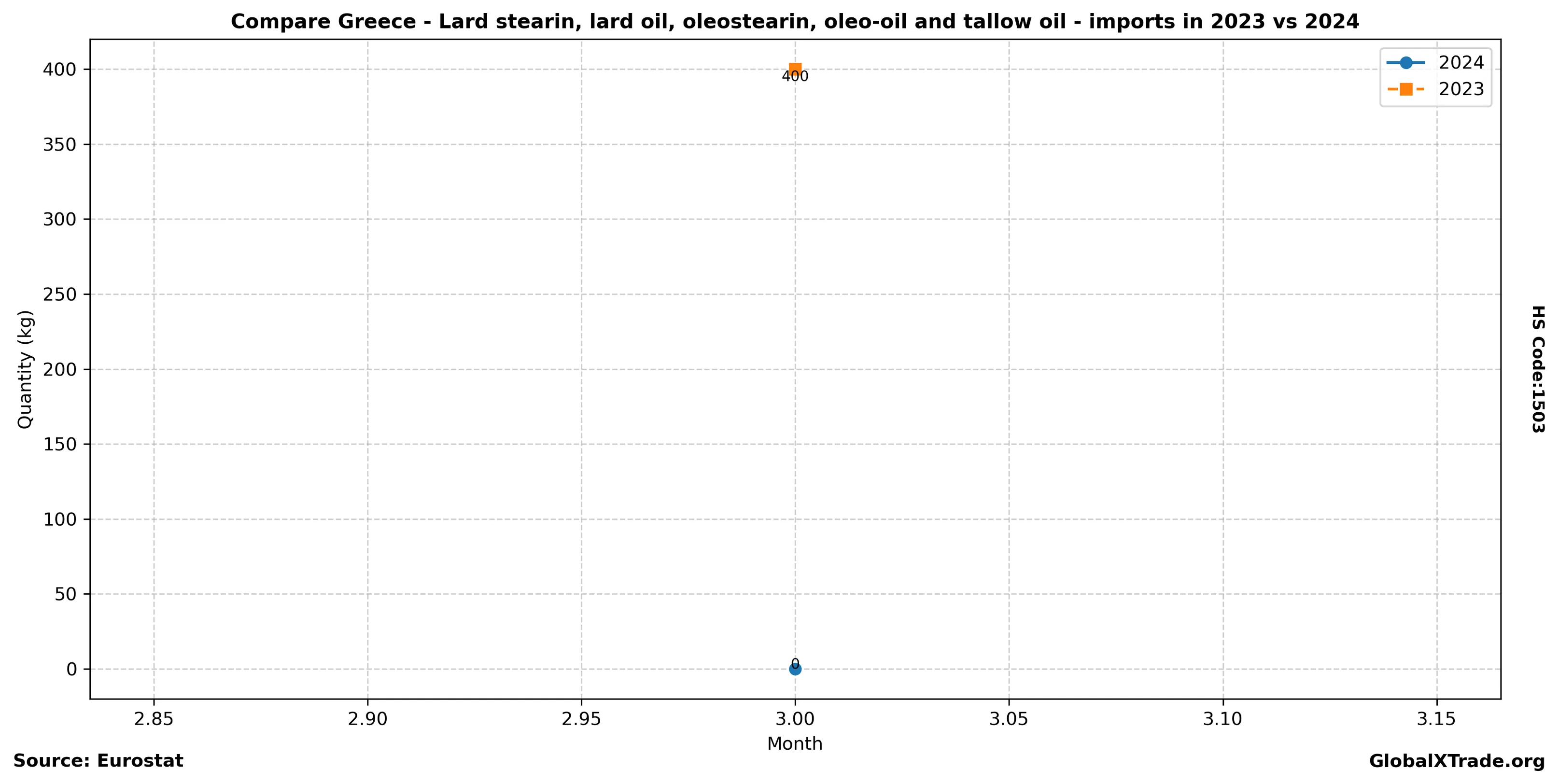 • Greek imports of lard stearin (HS Code 1503) rose by 12.5% year-over-year in June.