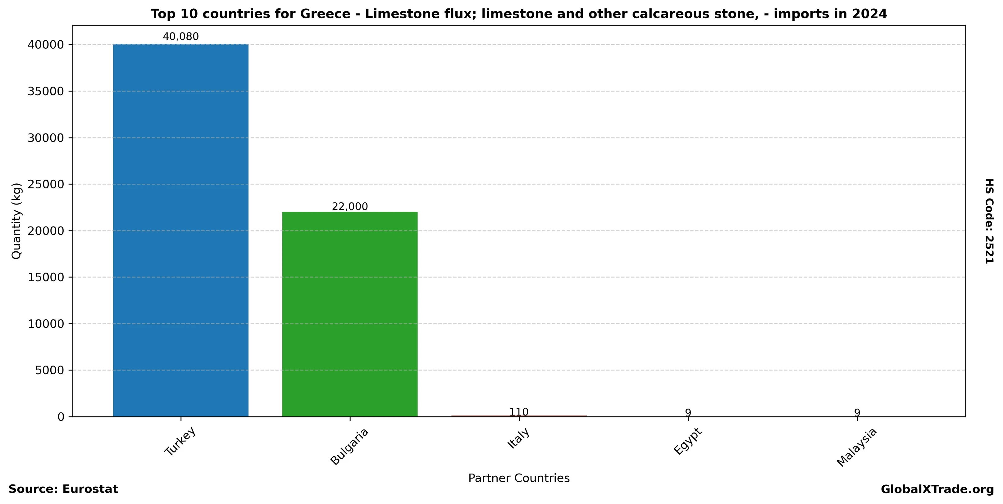• Greece’s imports of HS Code 2521, limestone flux; limestone and other calcareous stone, rose by 12% year-over-year in June.