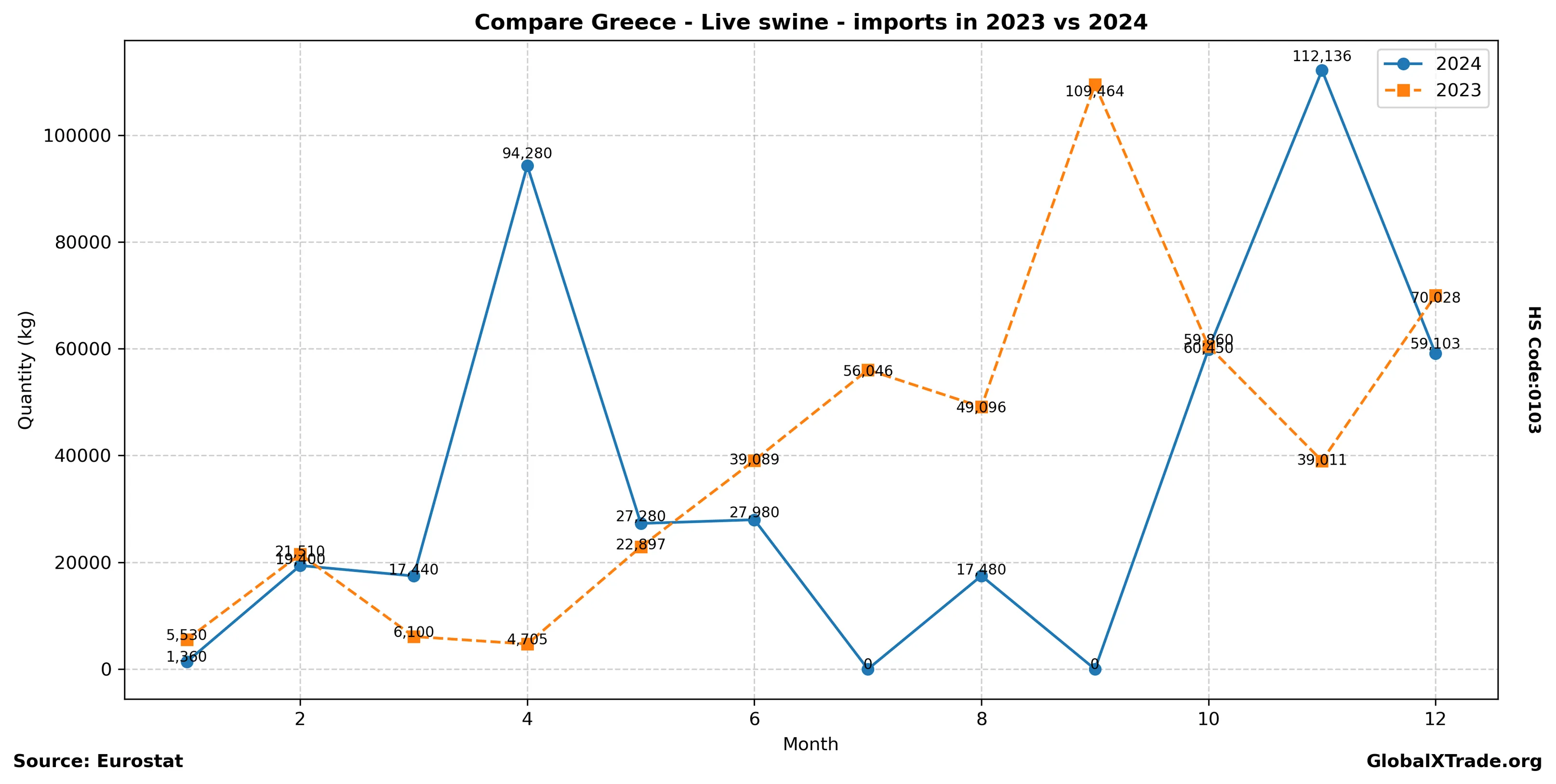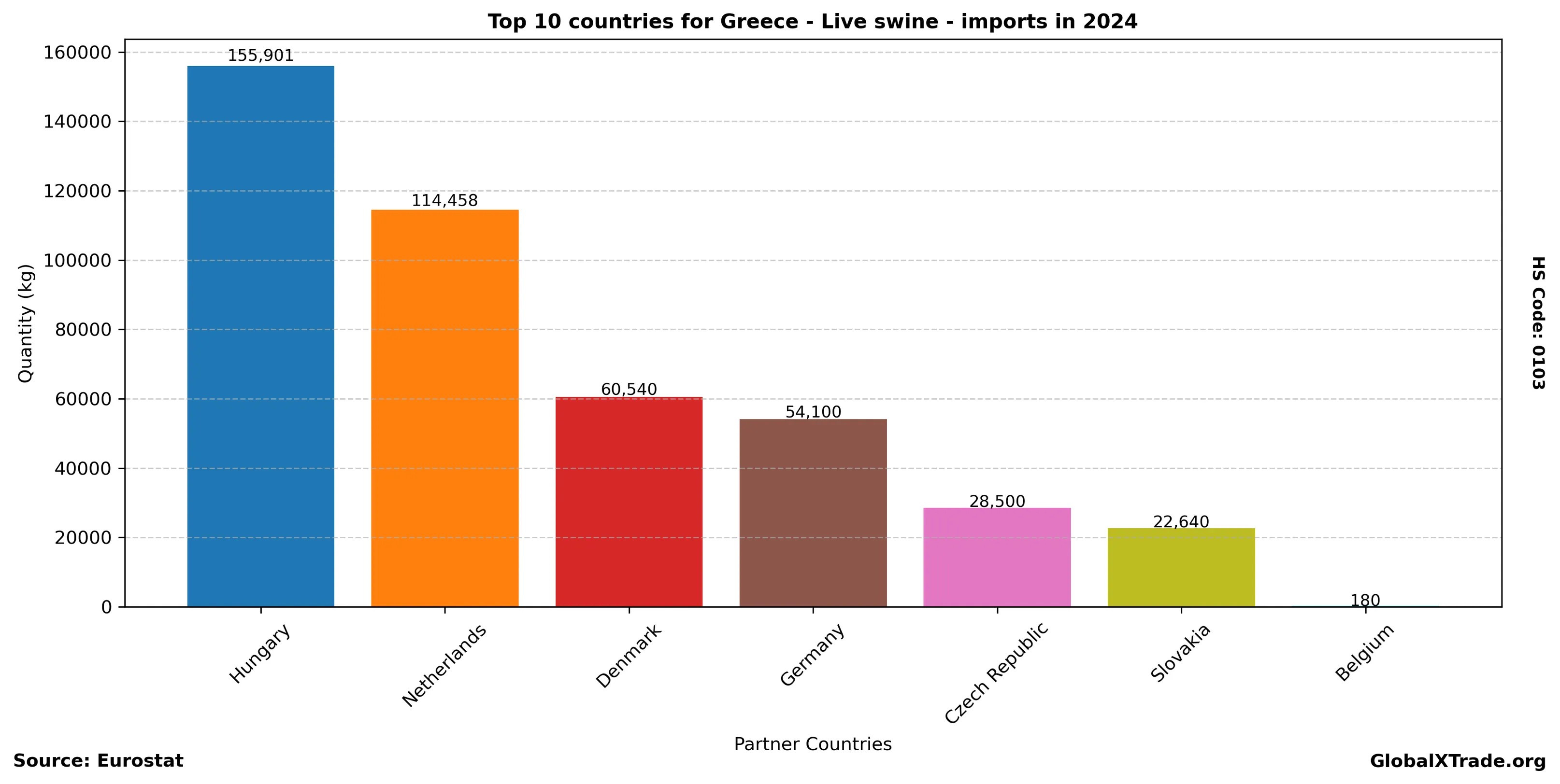 • Greek imports of live swine from other EU countries rose by 12% year-over-year in the second quarter.
