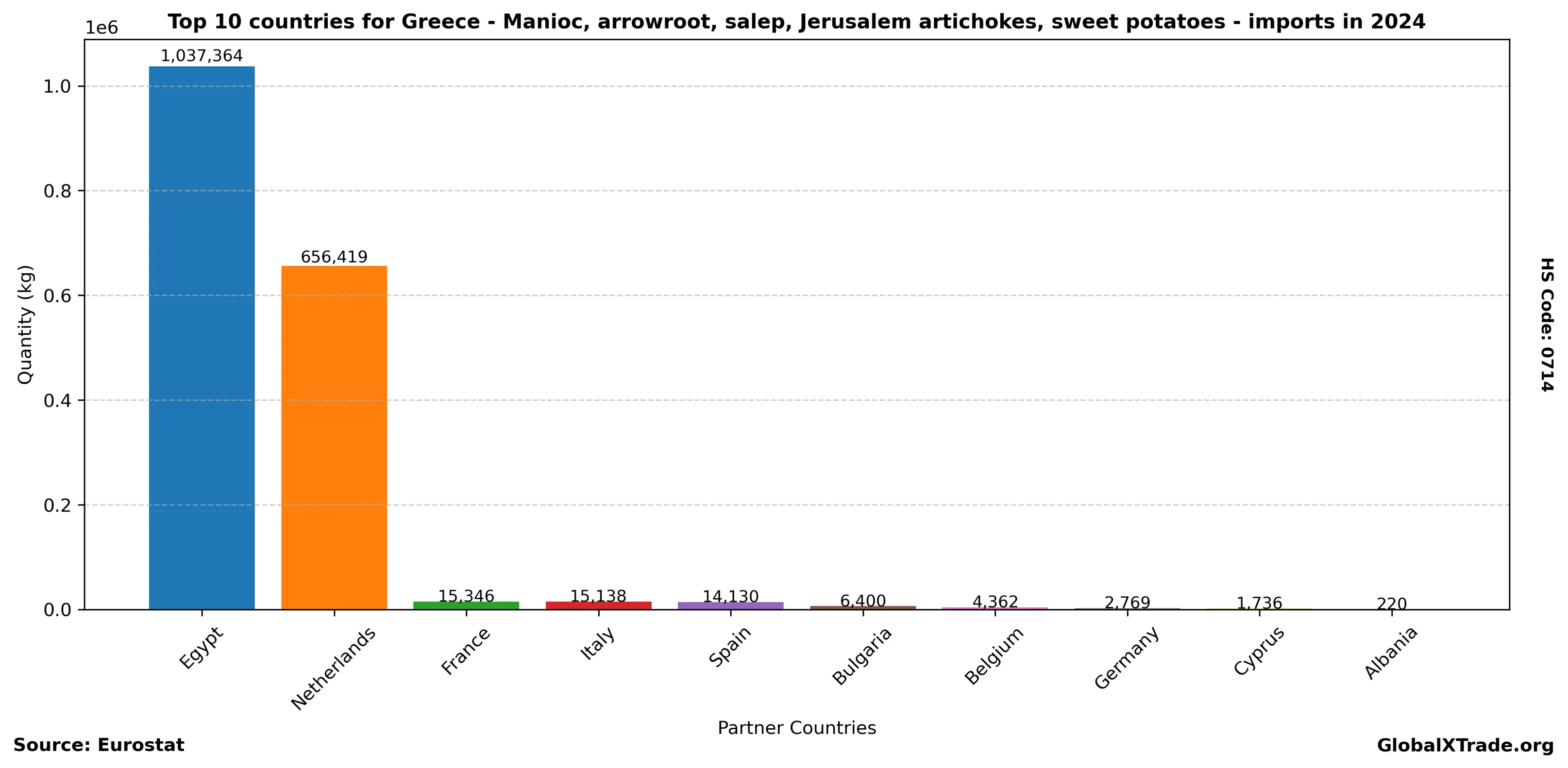 Greece “Manioc, arrowroot, salep, Jerusalem artichokes, sweet potatoes” Imports in 2024