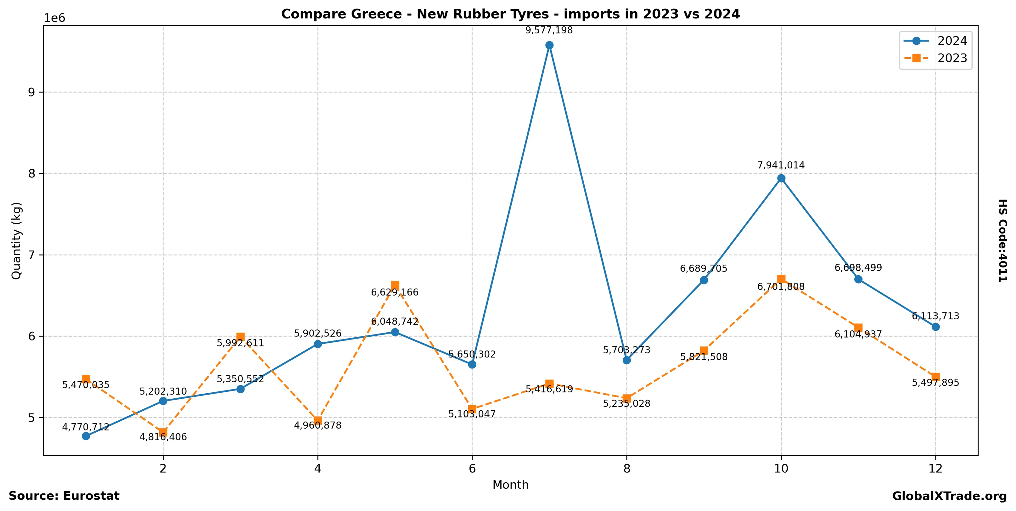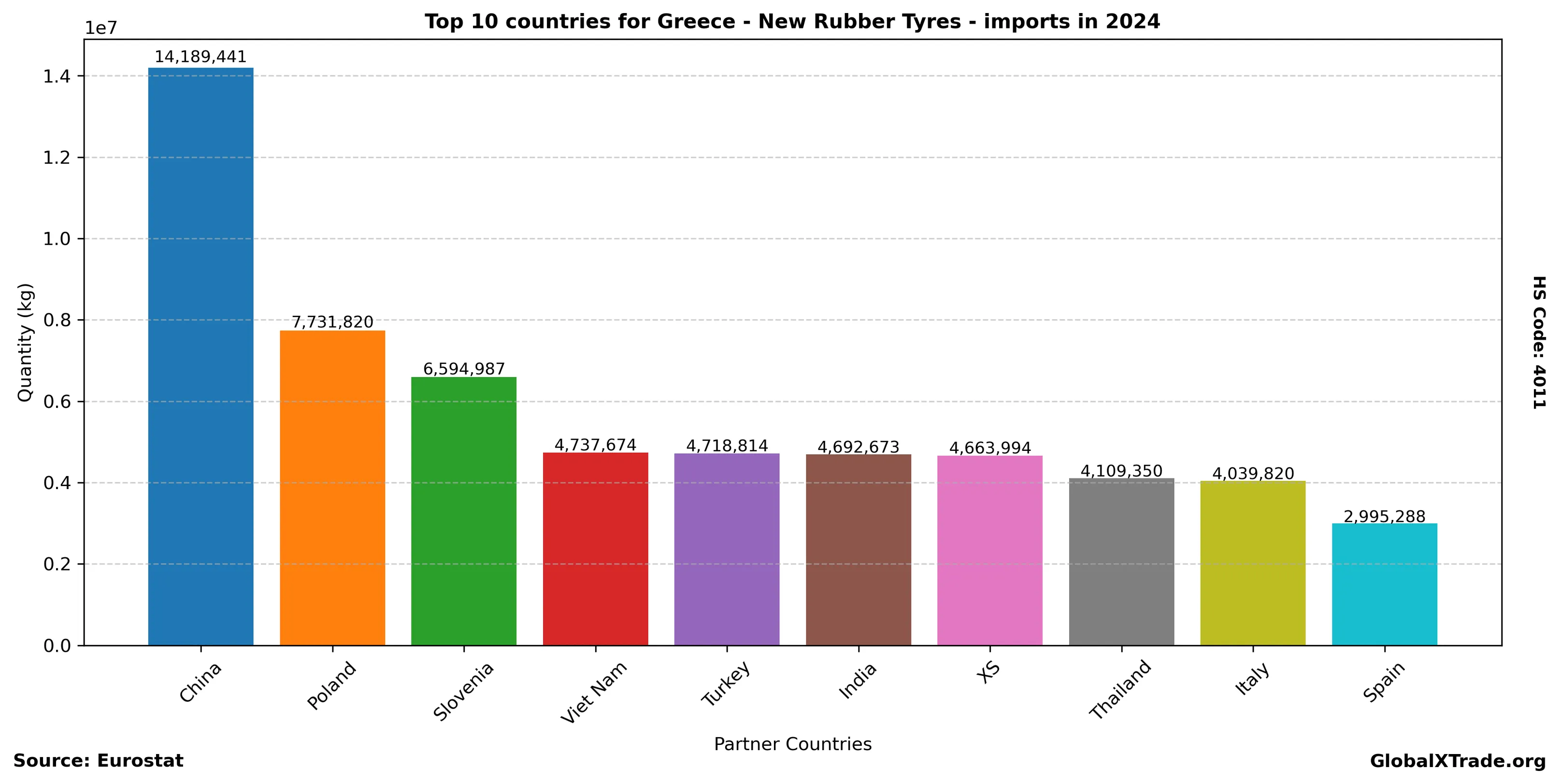 Greece “New Rubber Tyres” Imports in 2024