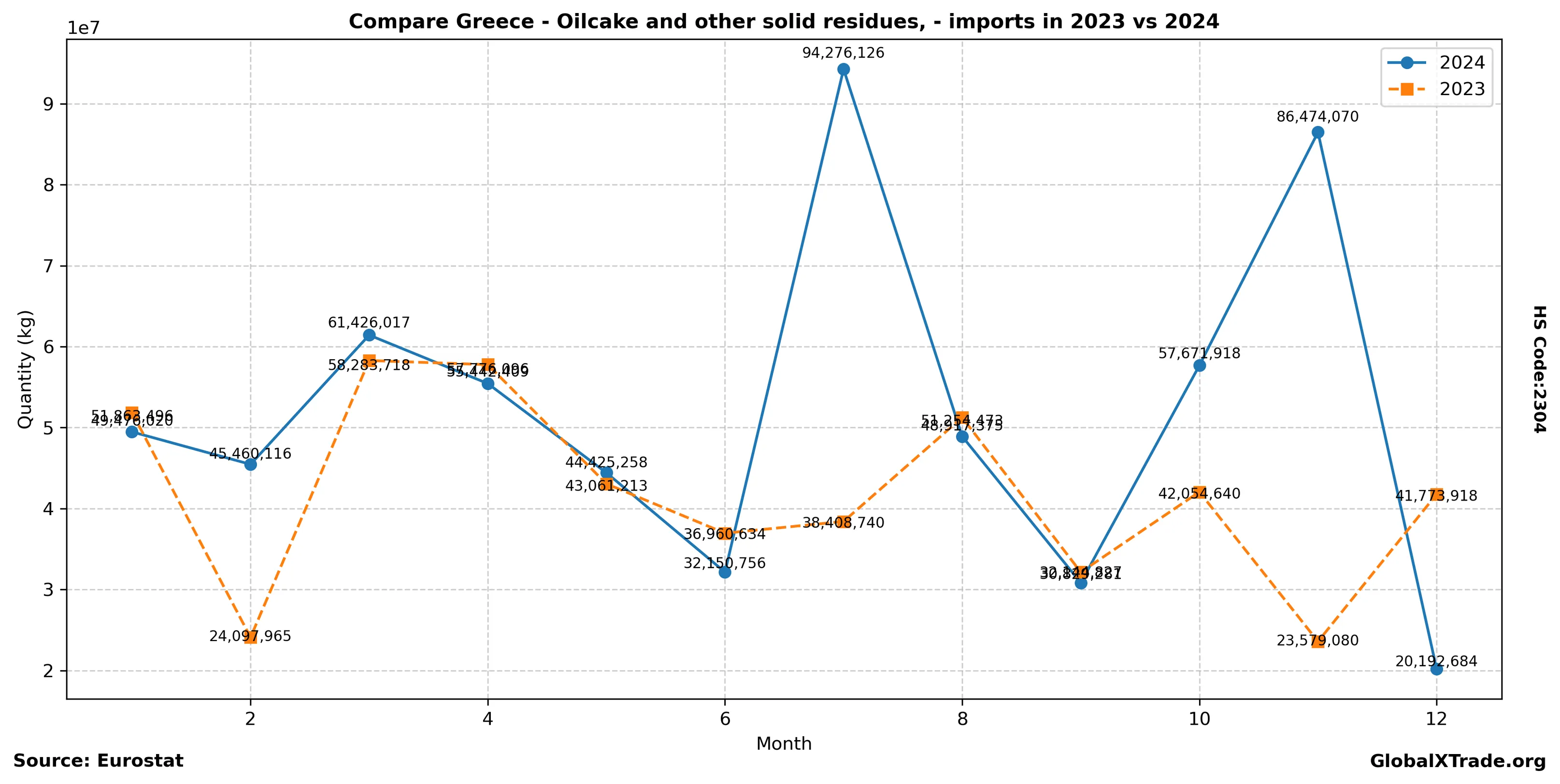 Greece “Oilcake and other solid residues,” Imports in 2024