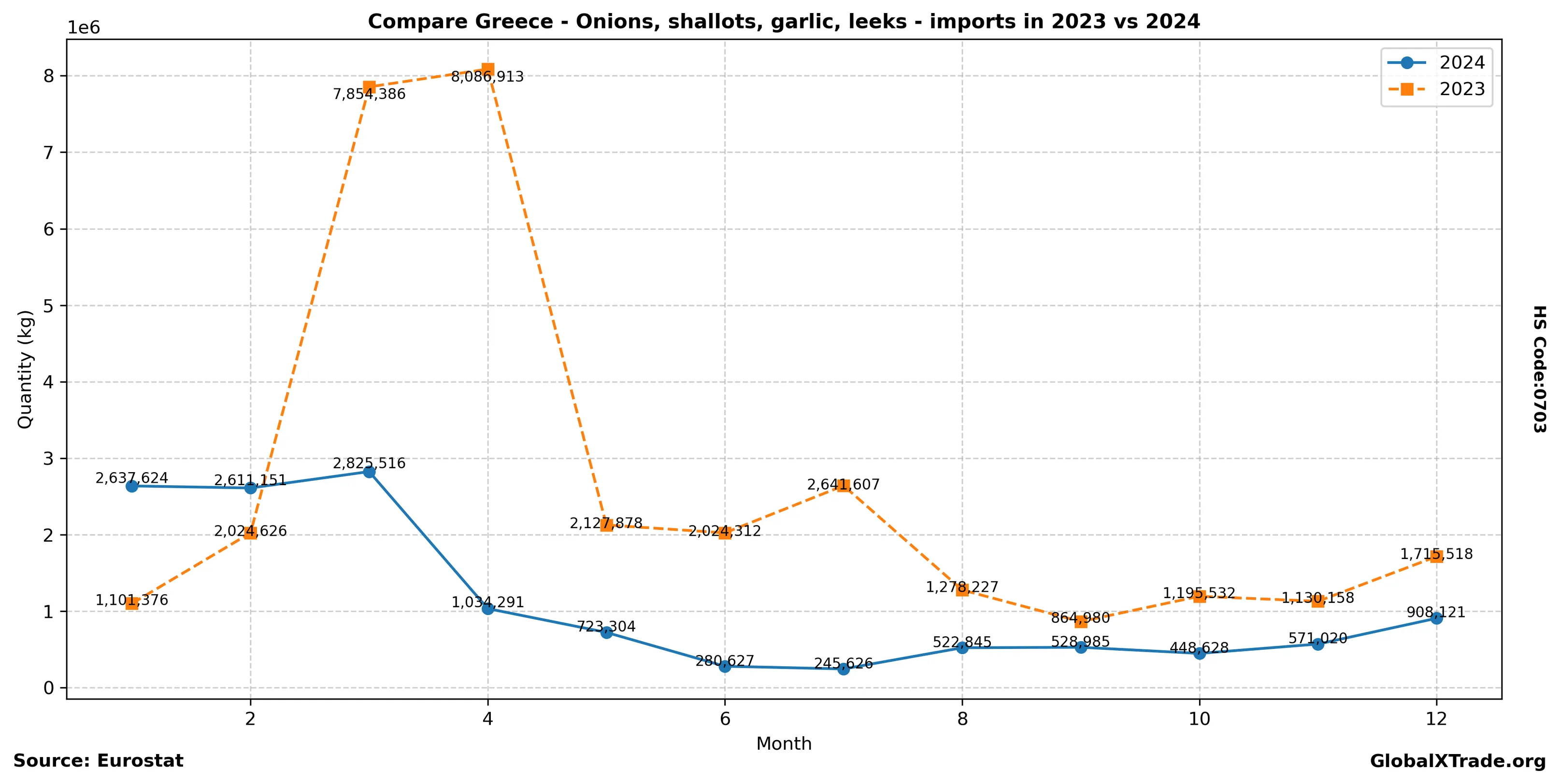 A surge in imports of onions and other related produce is being observed in Greece this summer. The country’s agricultural sector has reported a rise in demand for onions, particularly among restaurants and food manufacturers catering to tourists. Lower prices for imported onions are also attributed to improved supply chain efficiency, which has helped offset higher transportation costs.