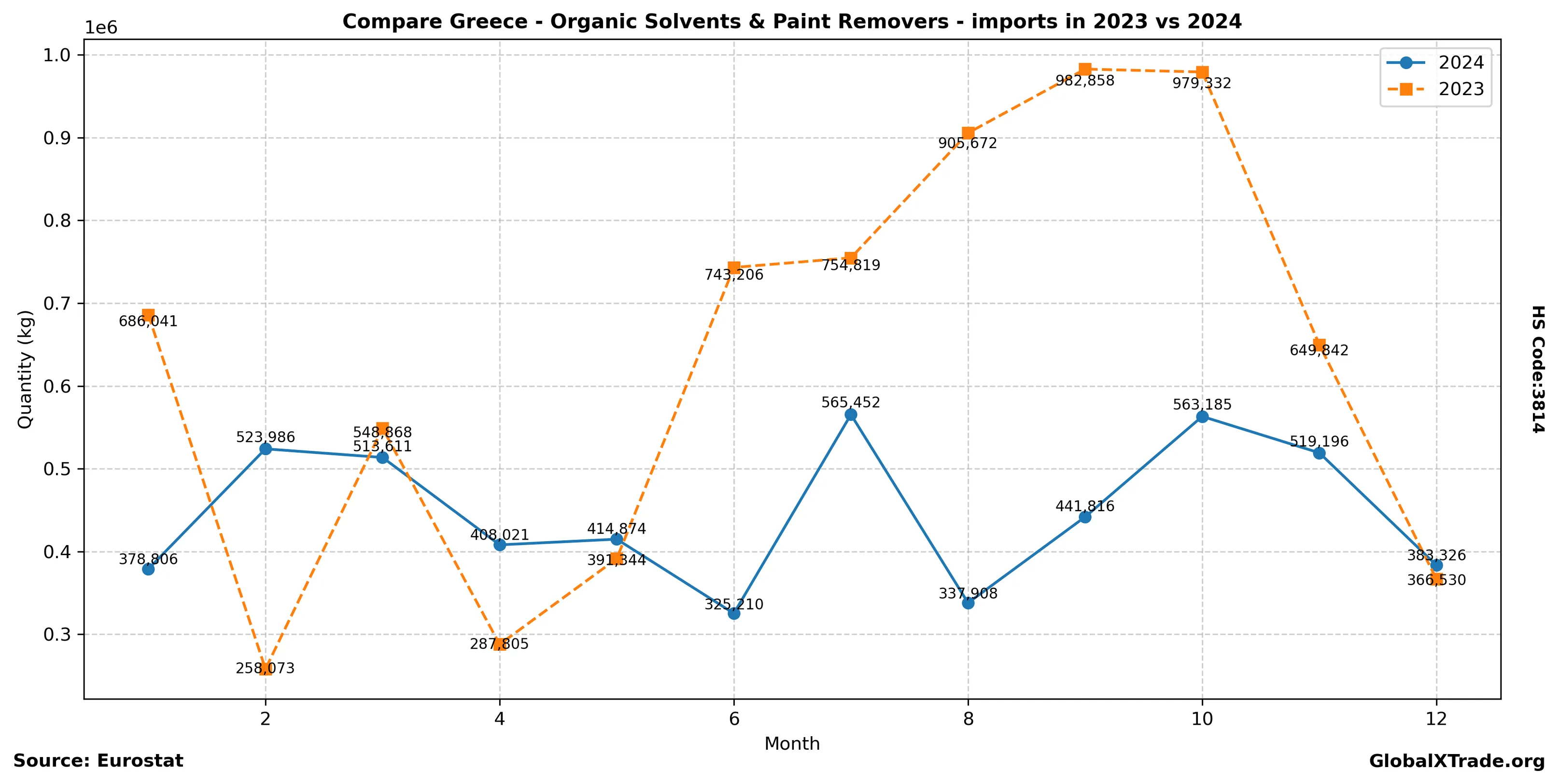 Greece’s economy is expected to experience a modest boost in the coming quarter as households and businesses prepare for the summer painting season. As a result, demand for organic solvents and paint removers has surged, leading to increased imports. The relatively stable prices of these chemicals suggest that suppliers have been able to maintain profit margins despite higher volumes.