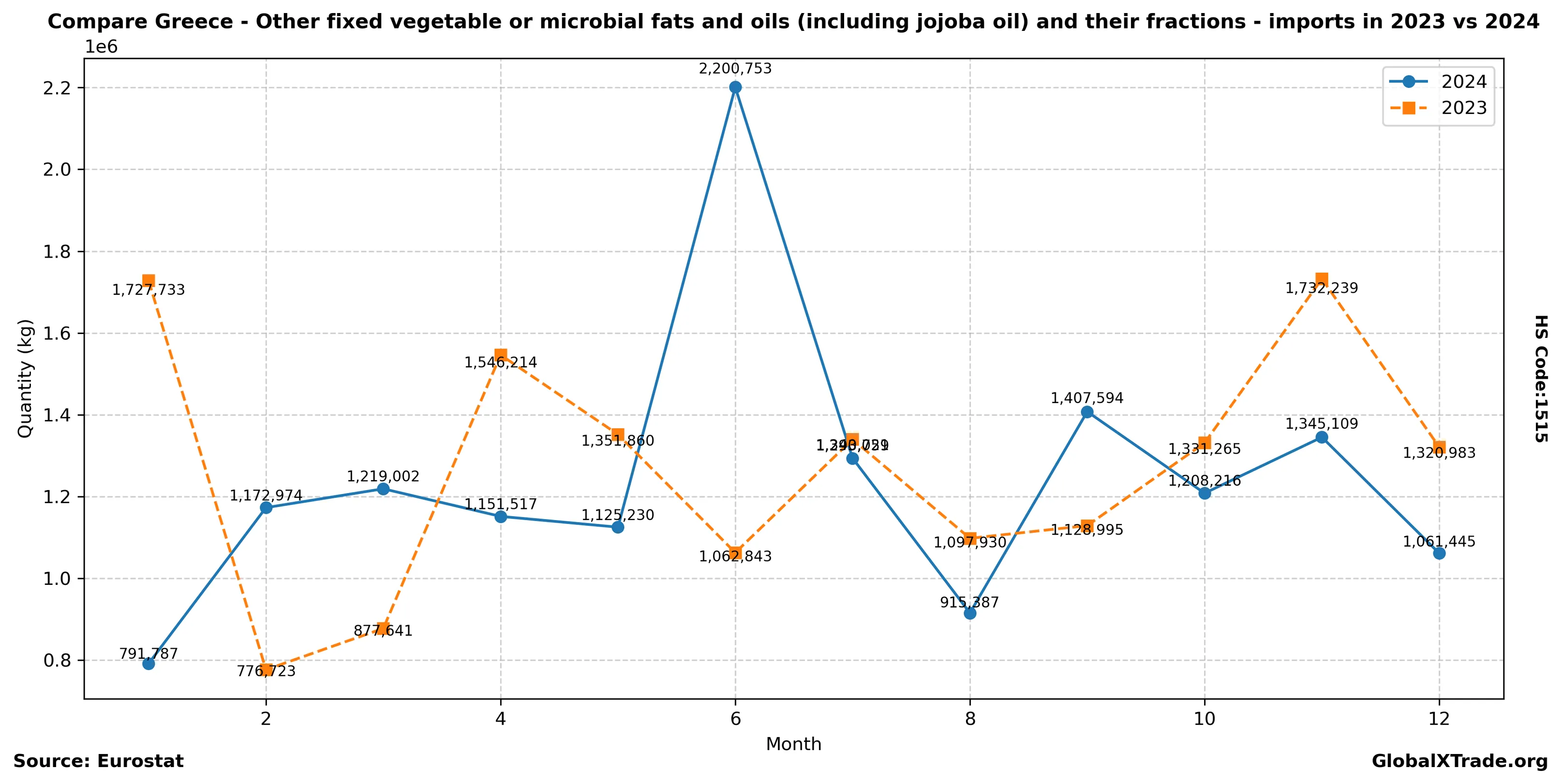 Greece’s imports of vegetable oils continued their upward trend in June, with total shipments reaching 5,000 tons, a 12% increase year-on-year. Market participants attribute the surge in demand to higher consumption by the food processing sector and tight local supplies due to drought conditions affecting domestic production. Meanwhile, average prices for imported vegetable oils rose 8.3% to $1,200 per ton, reflecting the impact of supply constraints on the market.