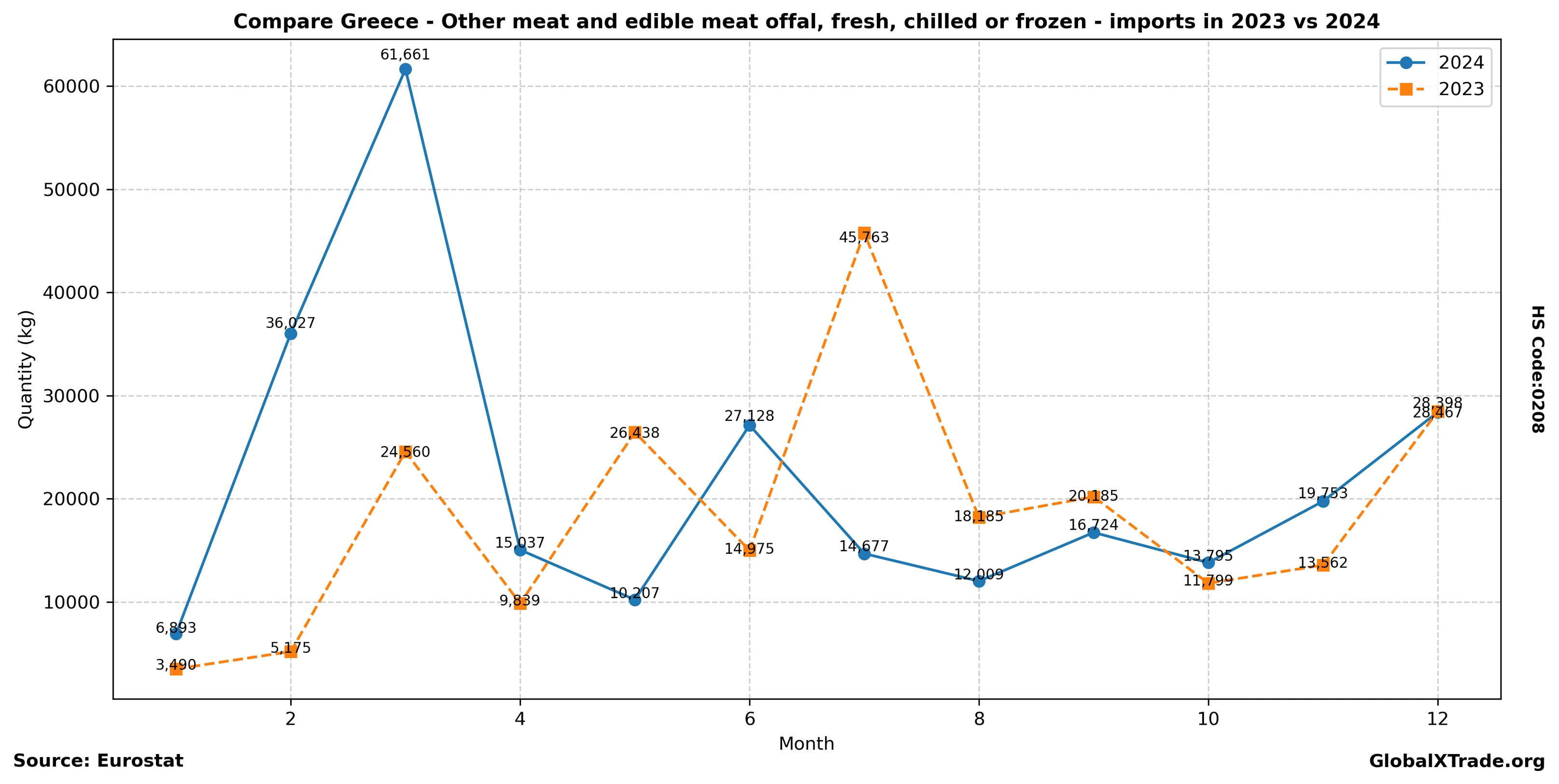 Greece’s meat imports have been on the rise as the country grapples with severe drought conditions that have impacted local livestock production. As a result, demand for frozen meat products like lamb offal has exceeded domestic supply capacity. This trend is expected to continue through the summer months, driving up import volumes and prices.