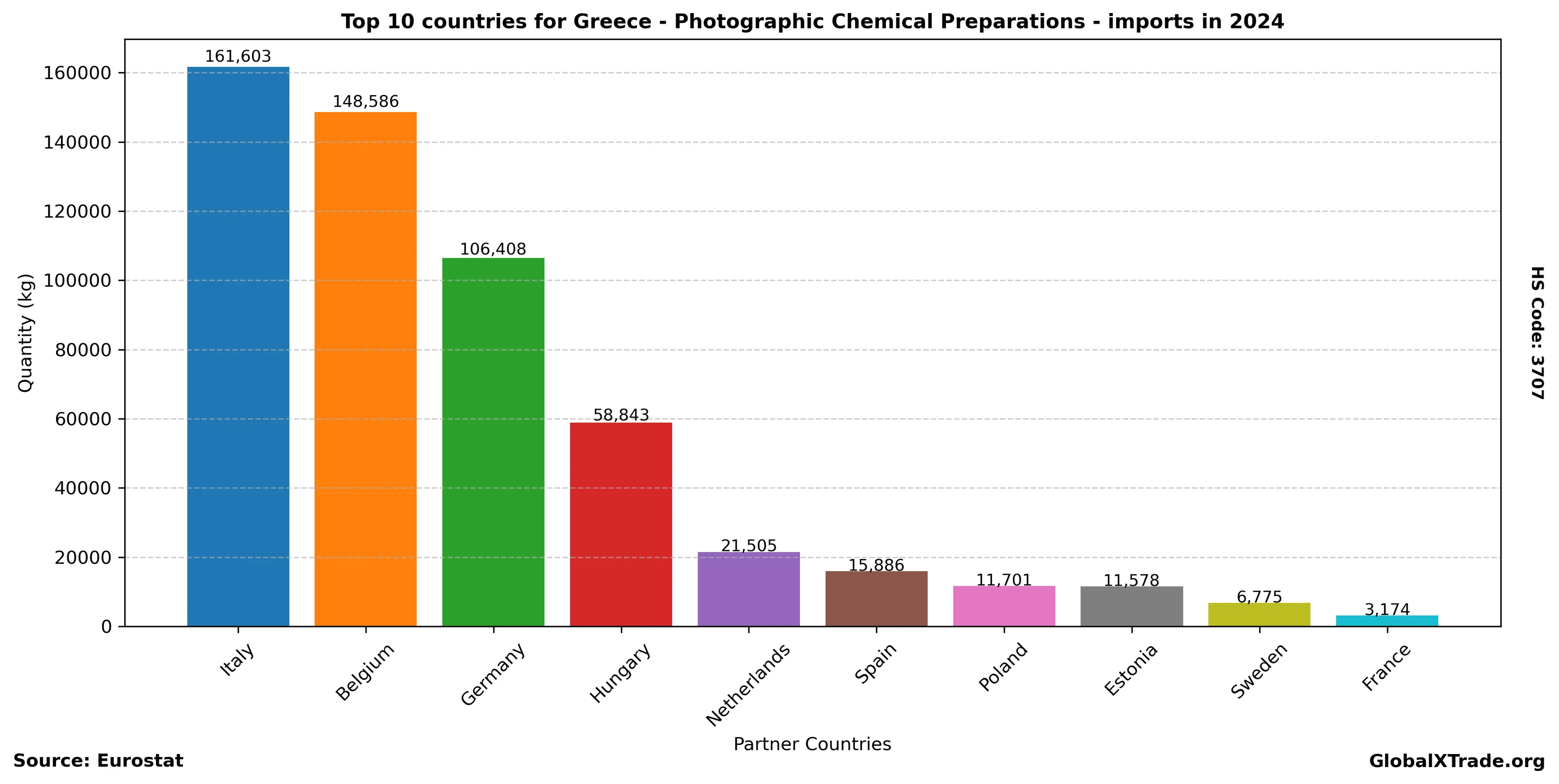 Greek imports of photographic chemical preparations accelerated in the second quarter, driven by increased demand from local manufacturers. As the peak tourist season approaches, Greece’s printing industry is expected to see higher demand for photographically processed products, such as postcards and souvenirs. The stable prices this quarter suggest that suppliers have adjusted their pricing in response to market conditions, providing a boost to import activity.