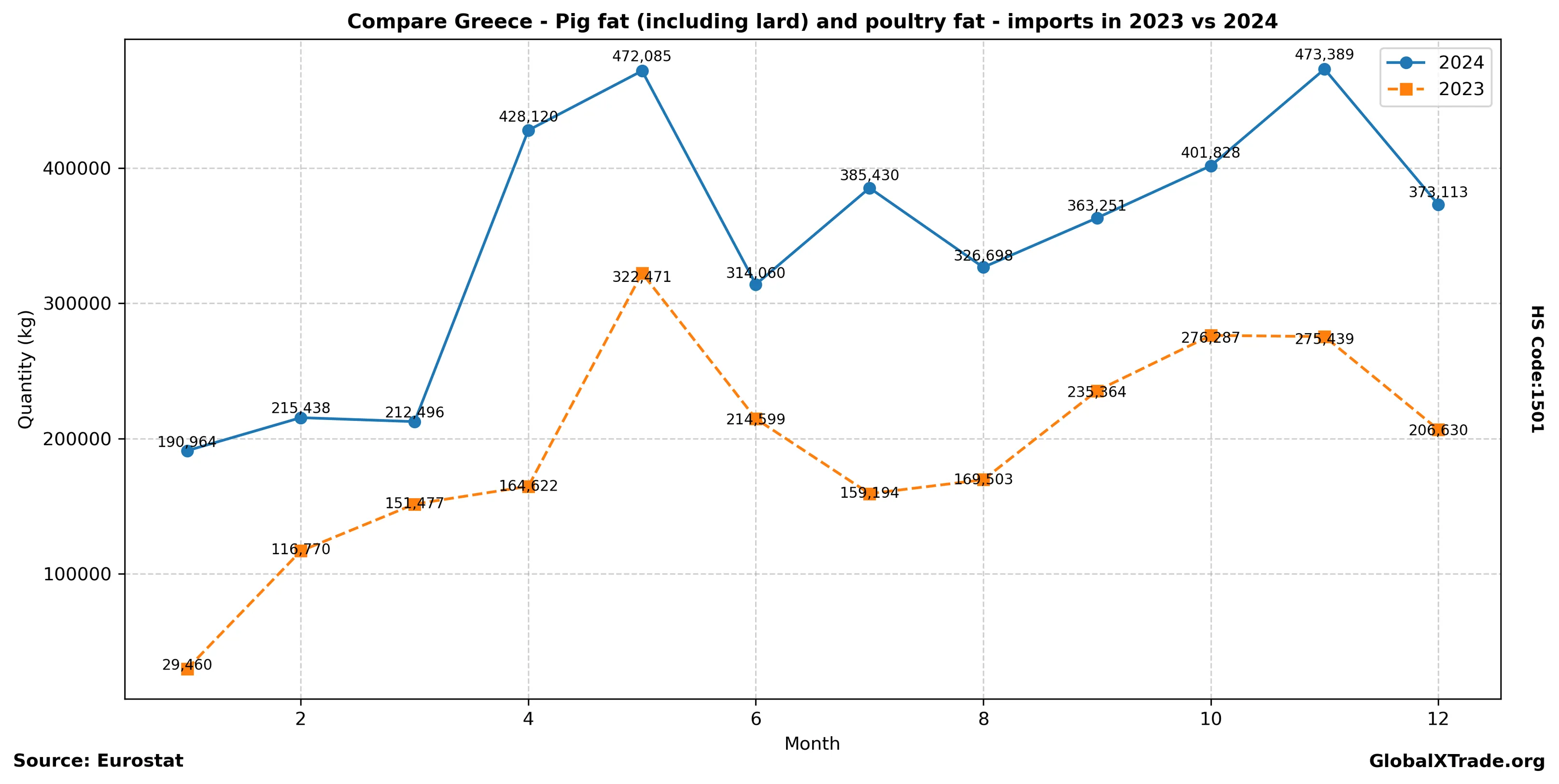 Greece “Pig fat (including lard) and poultry fat” Imports in 2024