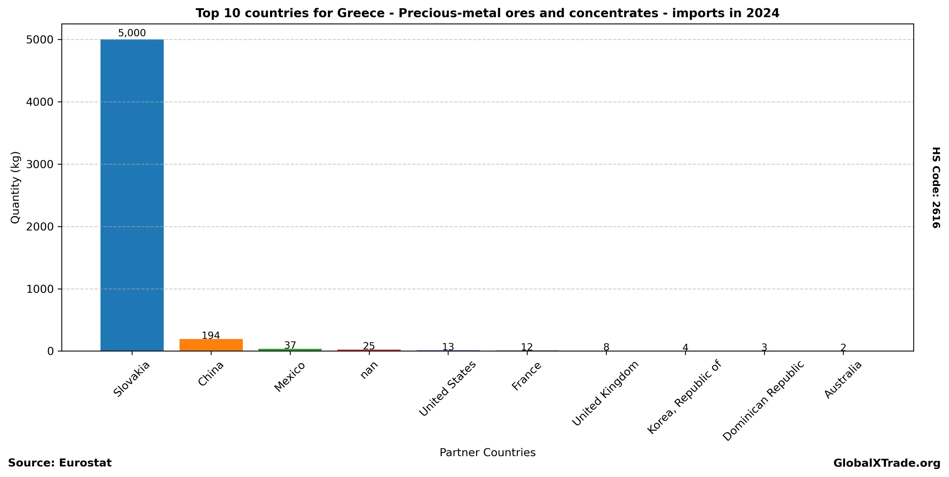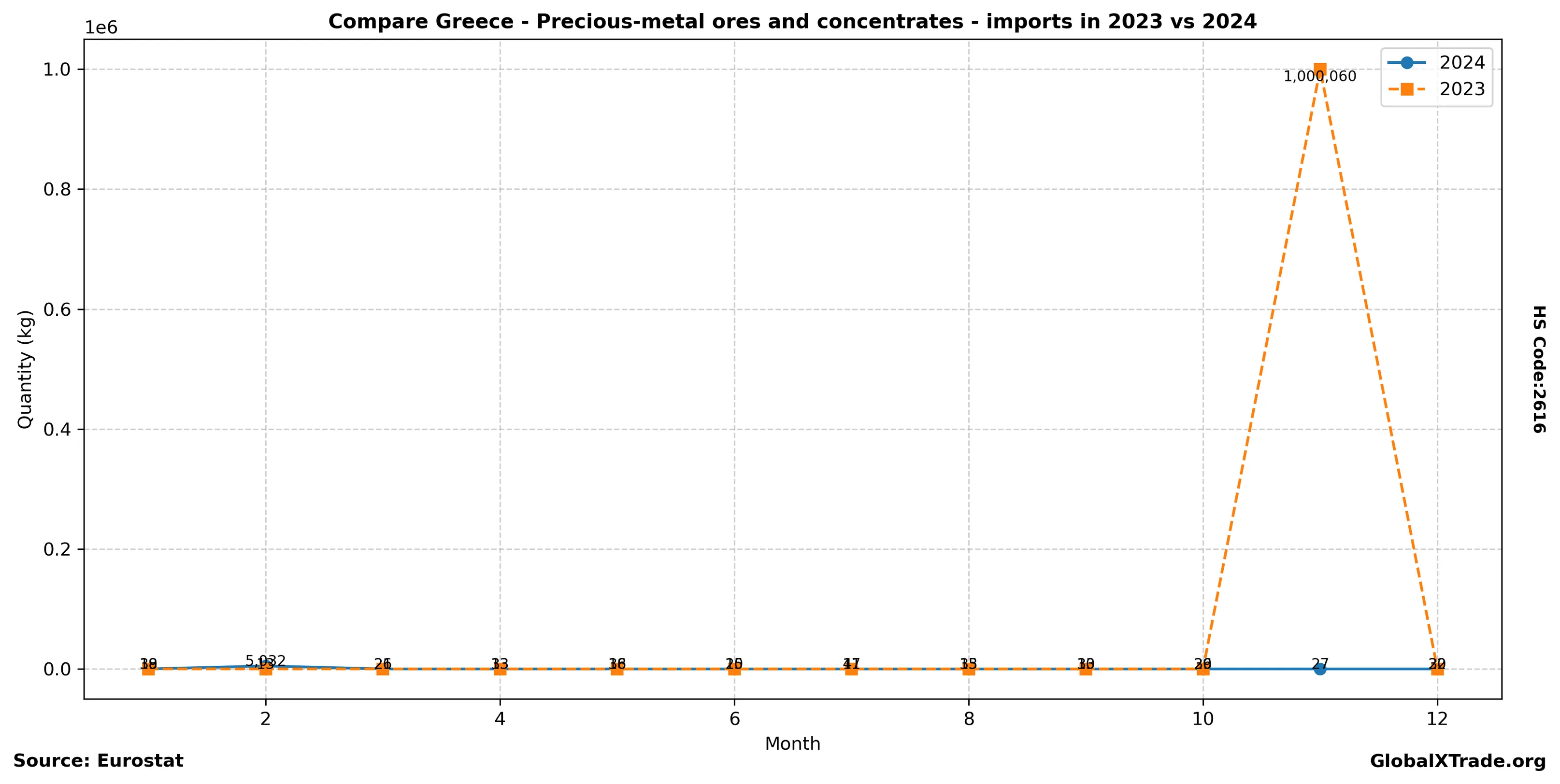• The Greek Ministry of Finance reported a 12% increase in imports of precious-metal ores and concentrates in the first half of 2024, compared to the same period last year.