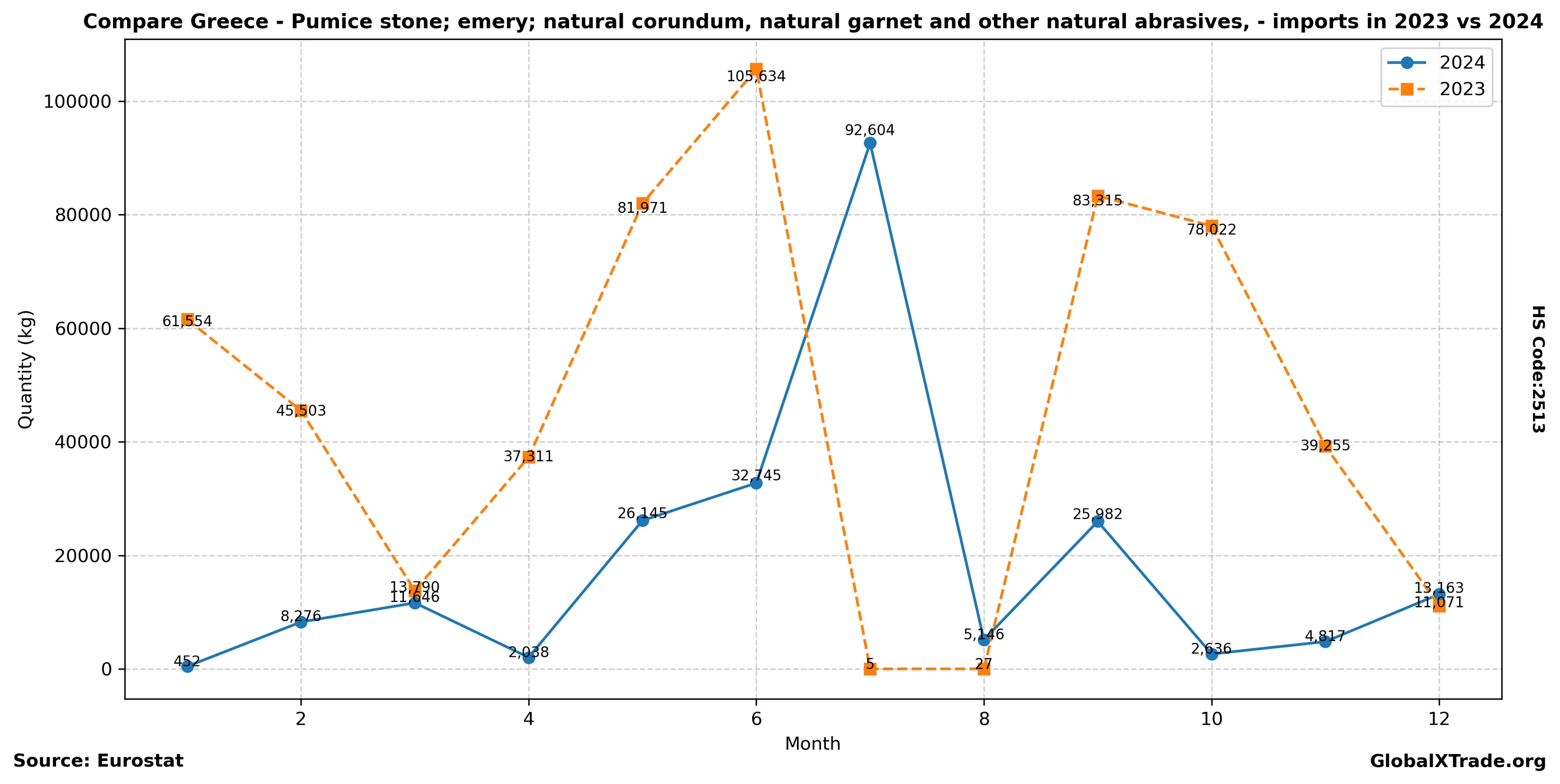 Greece’s abrasive imports continue to grow as the country’s construction industry expands. Strong demand for pumice stone and emery, driven by a surge in building projects, is driving up imports. As the market trend shows no signs of slowing, Greek manufacturers are increasing production capacity to meet growing orders from domestic buyers. The country’s economy benefits from this trend, with increased activity in the construction sector contributing to GDP growth.