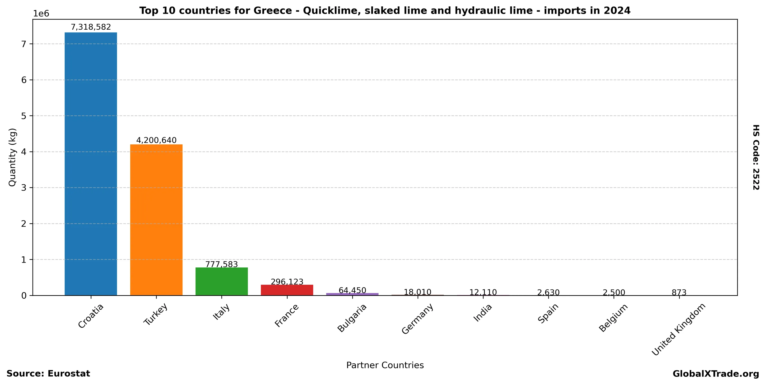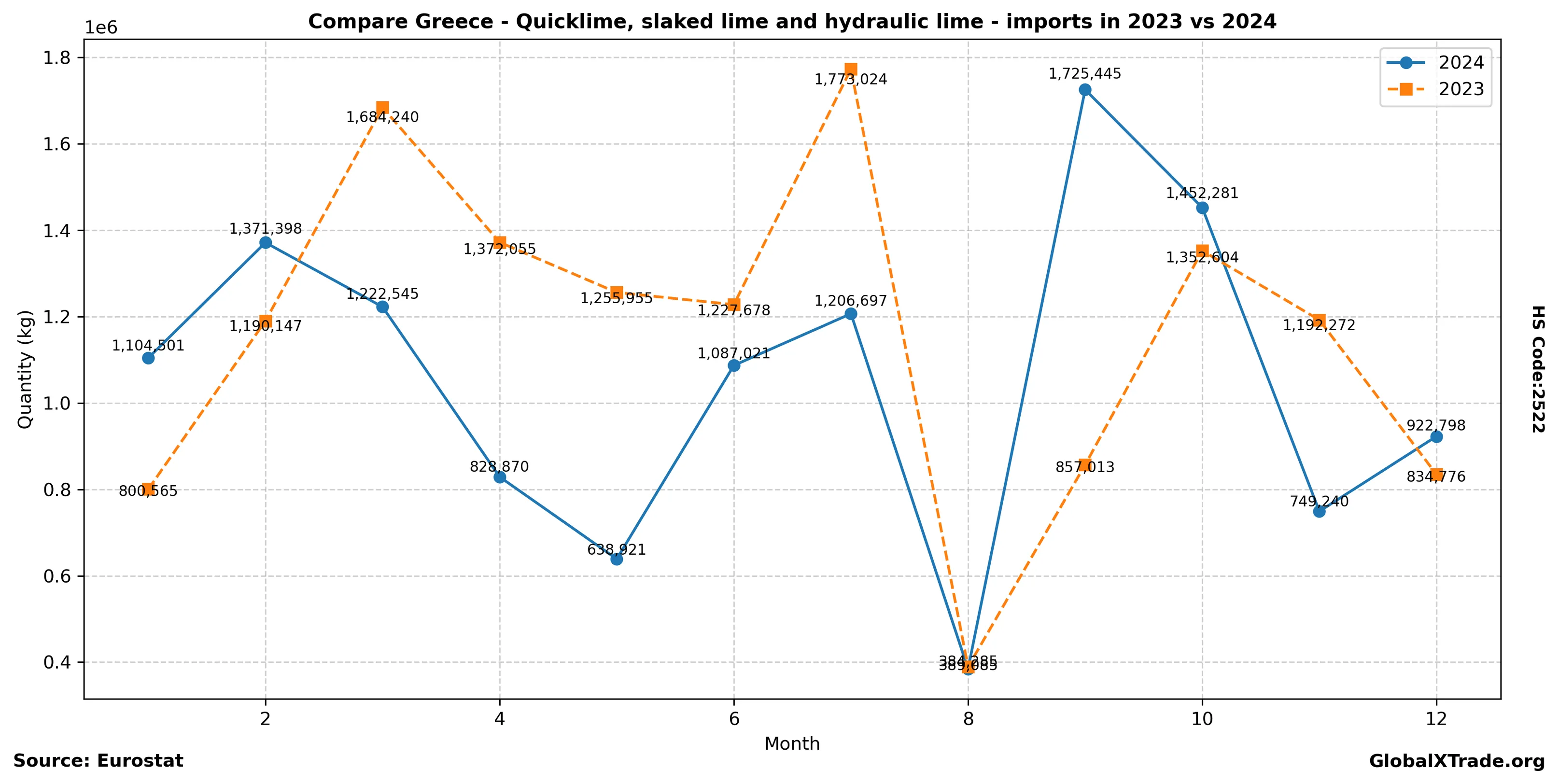 Greece “Quicklime, slaked lime and hydraulic lime” Imports in 2024