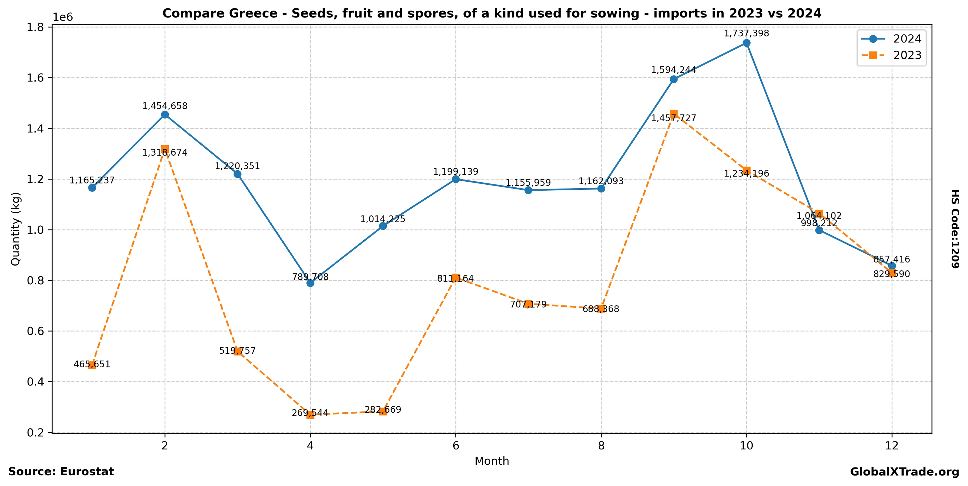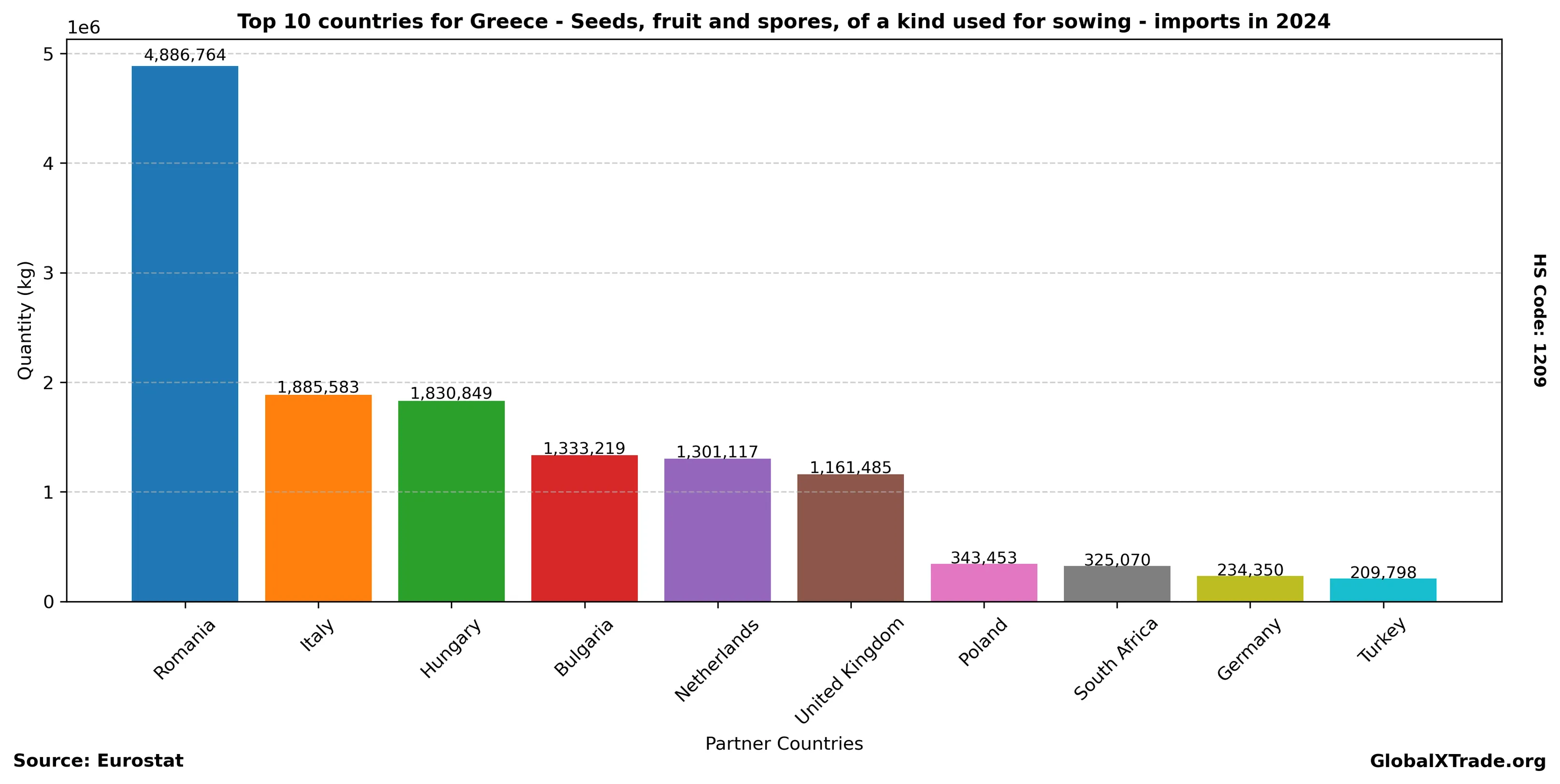 • Greek imports of seeds, fruit, and spores fell by 2% year-to-date (YTD), with a total value of $145 million.