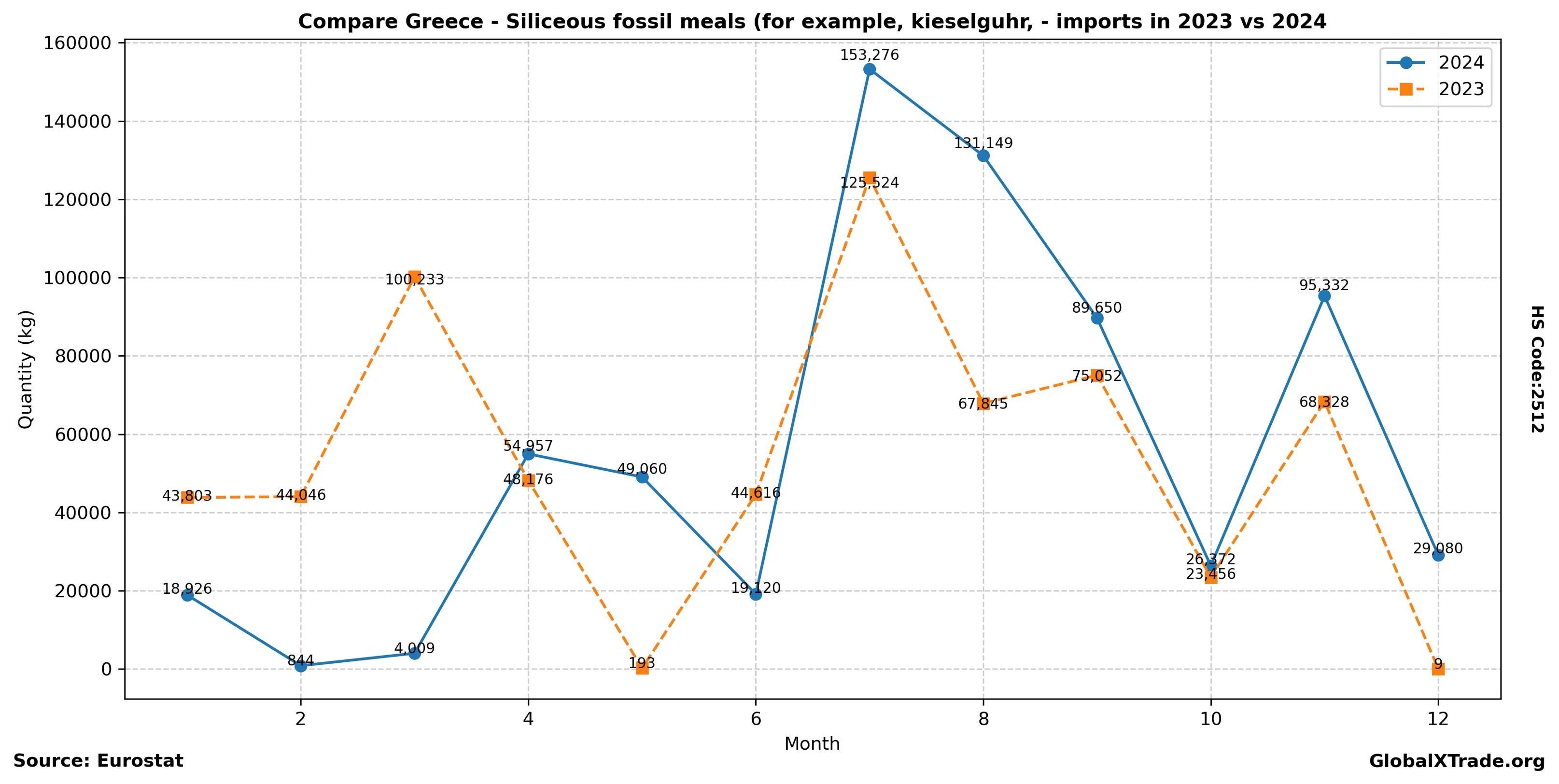 Greece’s import of siliceous fossil meals has shown a seasonal uptick as the country’s ceramic manufacturers ramp up production to meet peak summer demand. The stabilizing prices reflect a balanced supply chain, with no significant disruptions reported in key shipping routes or supplier countries. As a result, Greek companies are able to secure timely deliveries and maintain stable costs for their operations.