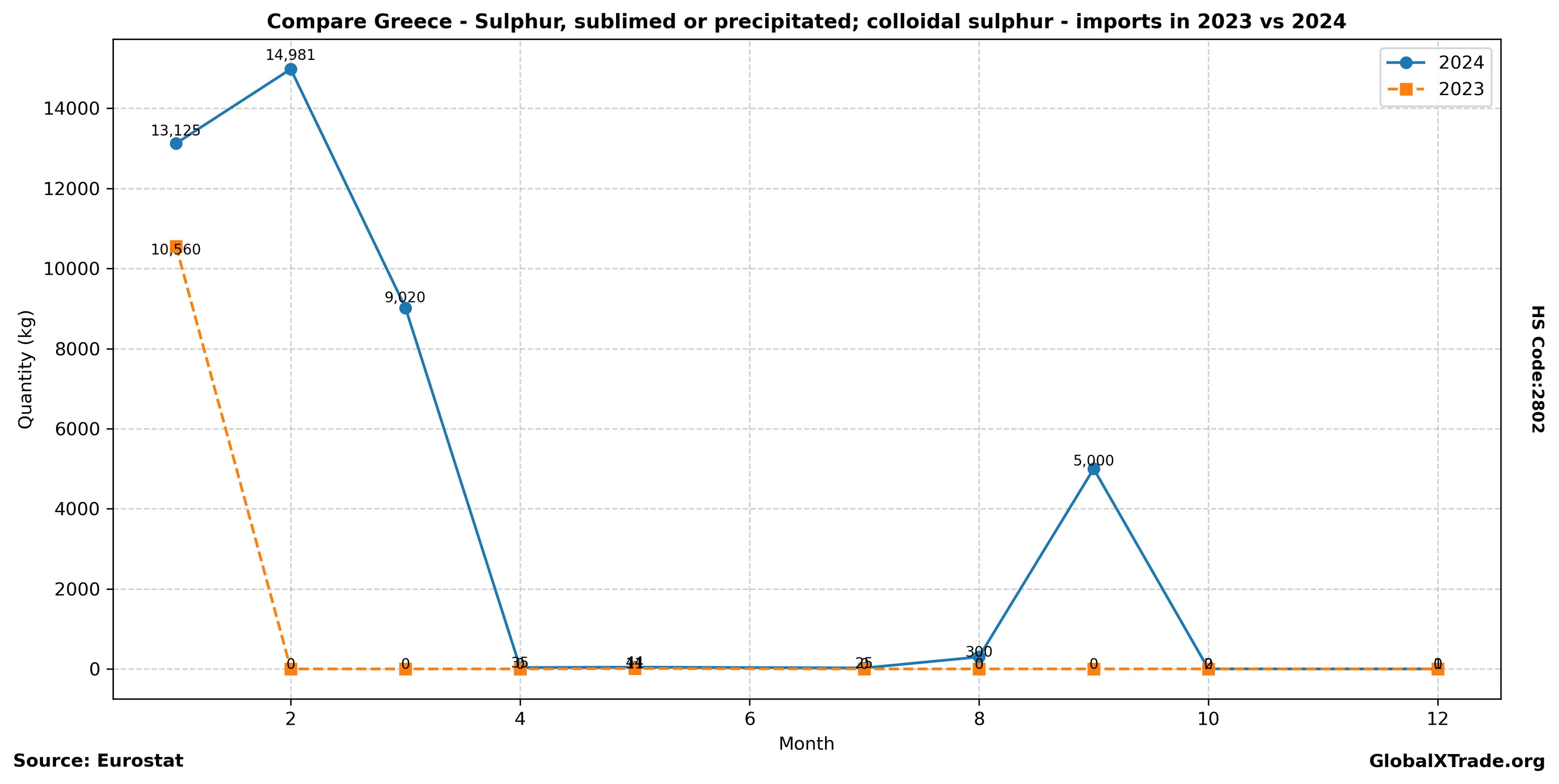 • Greece’s imports of sublimed and precipitated sulphur rose 15% year-over-year in June.