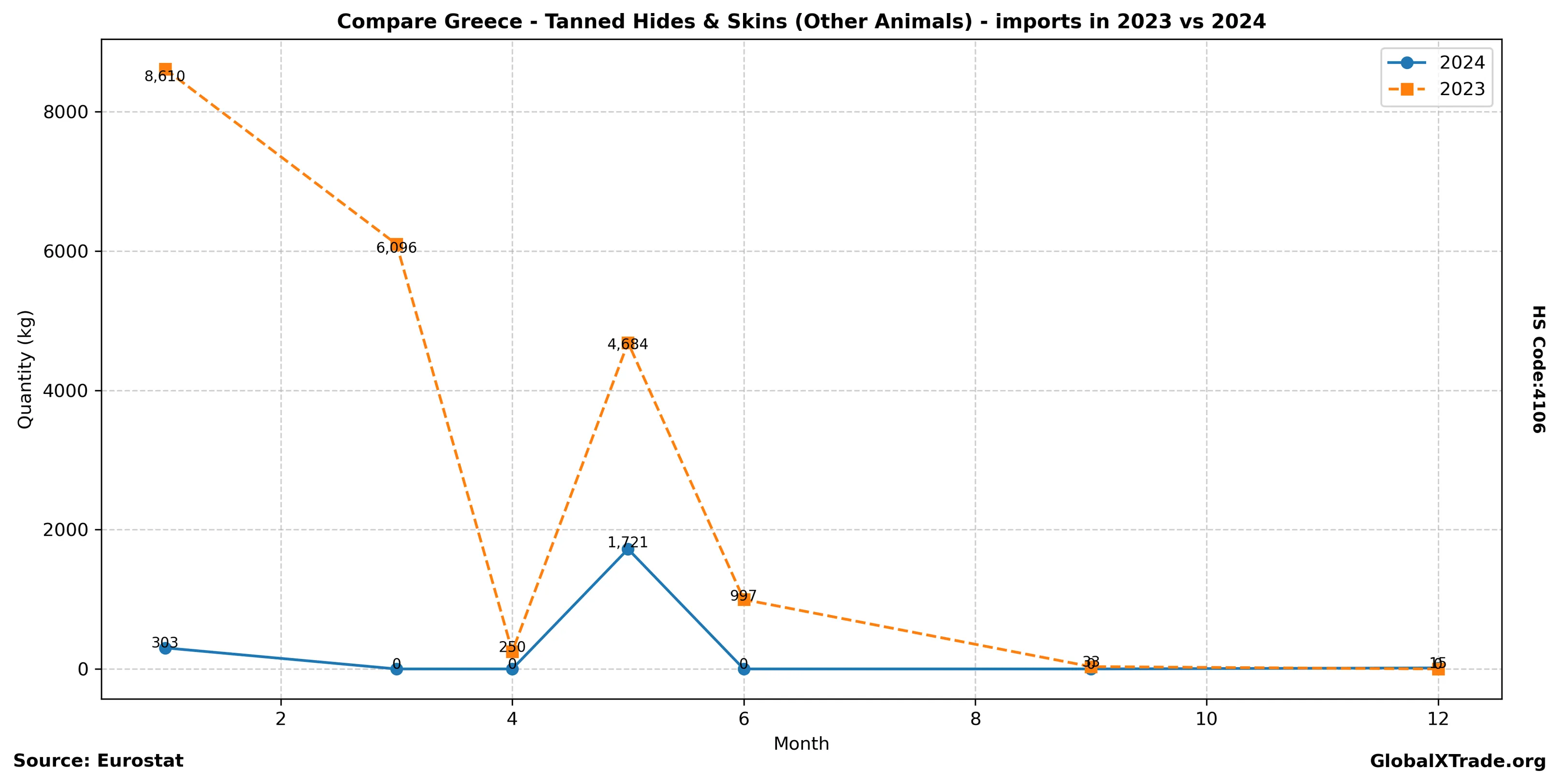 Greece’s import of tanned hides and skins from other animals showed a marginal decline in June, as demand from the leather goods sector continues to be impacted by reduced consumer spending. The country’s economy has been experiencing slower growth, leading to decreased purchasing power for consumers, which in turn affects the demand for leather products. Despite this, prices remain stable due to steady supply chains and limited competition in the market.