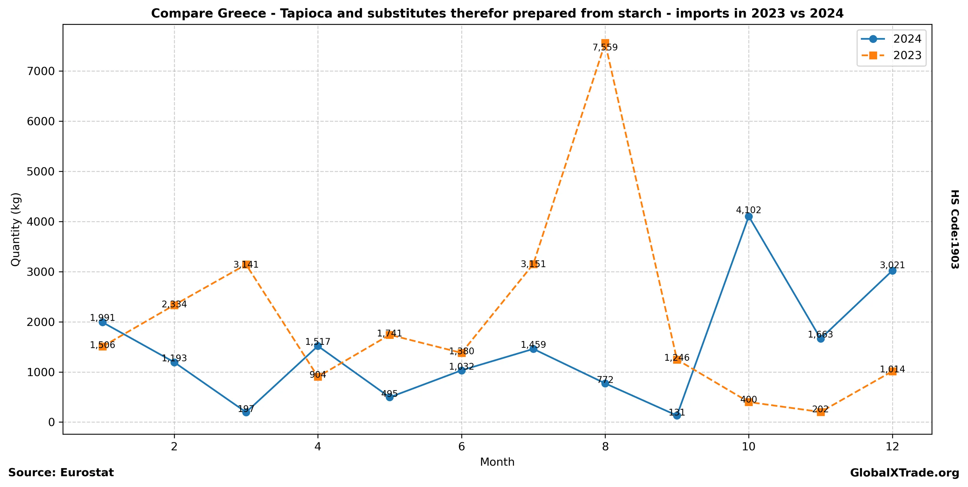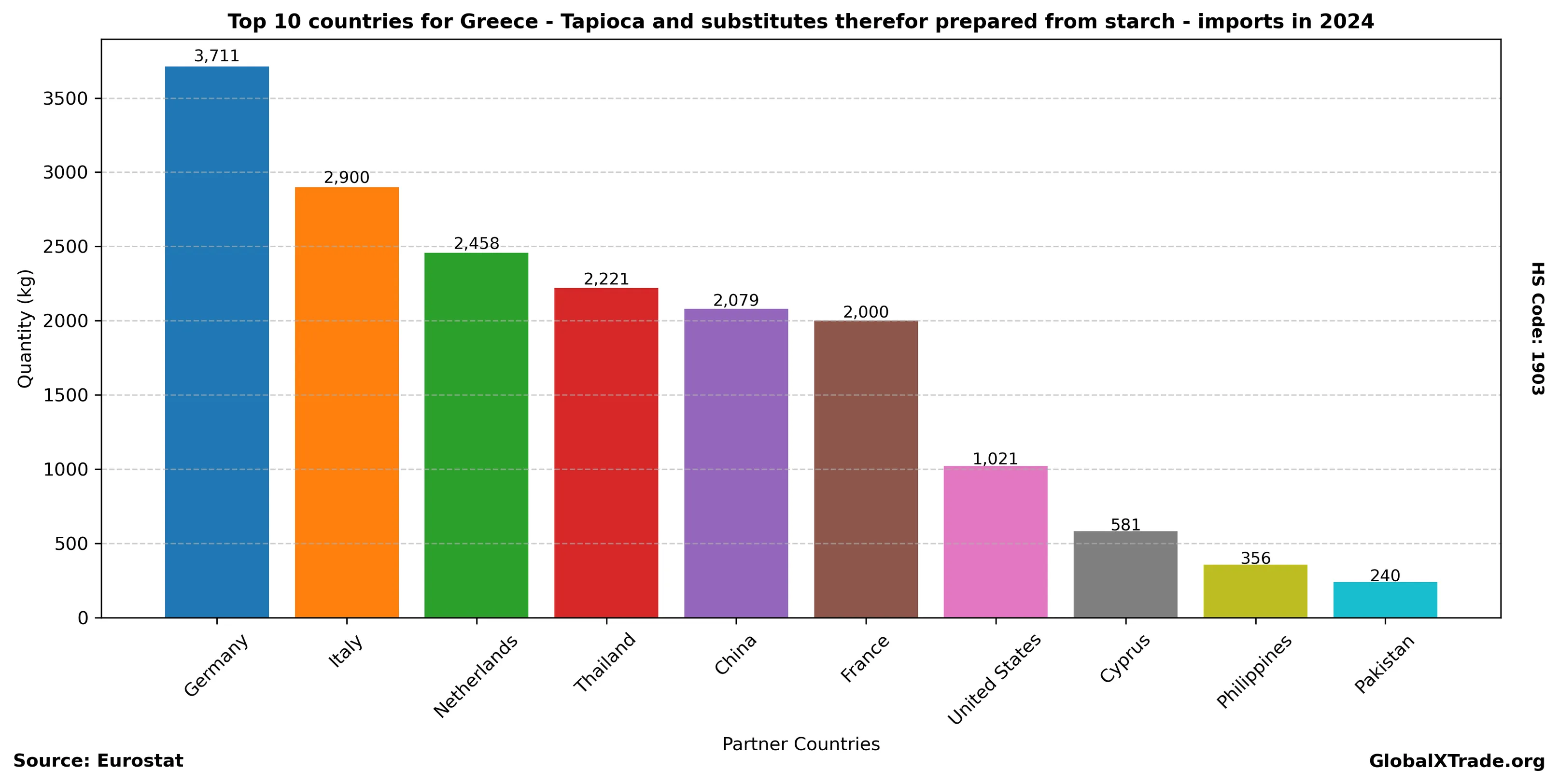 Greece “Tapioca and substitutes therefor prepared from starch” Imports in 2024