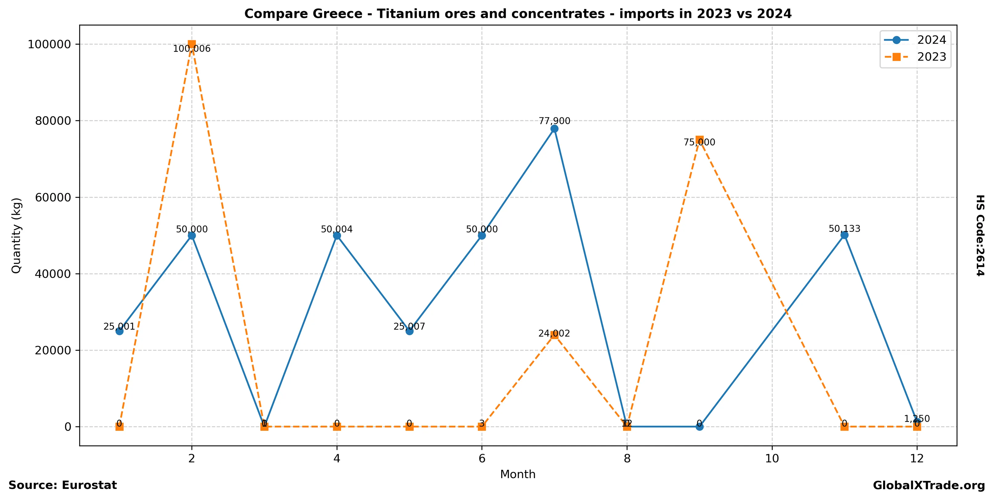 Greece’s imports of titanium ores and concentrates have benefited from the ongoing expansion of its steel industry, particularly in the automotive sector. As European demand continues to grow, Greek ports are expected to receive a steady flow of titanium concentrate shipments throughout the remainder of the year, with prices likely to remain stable due to robust supply chain dynamics.