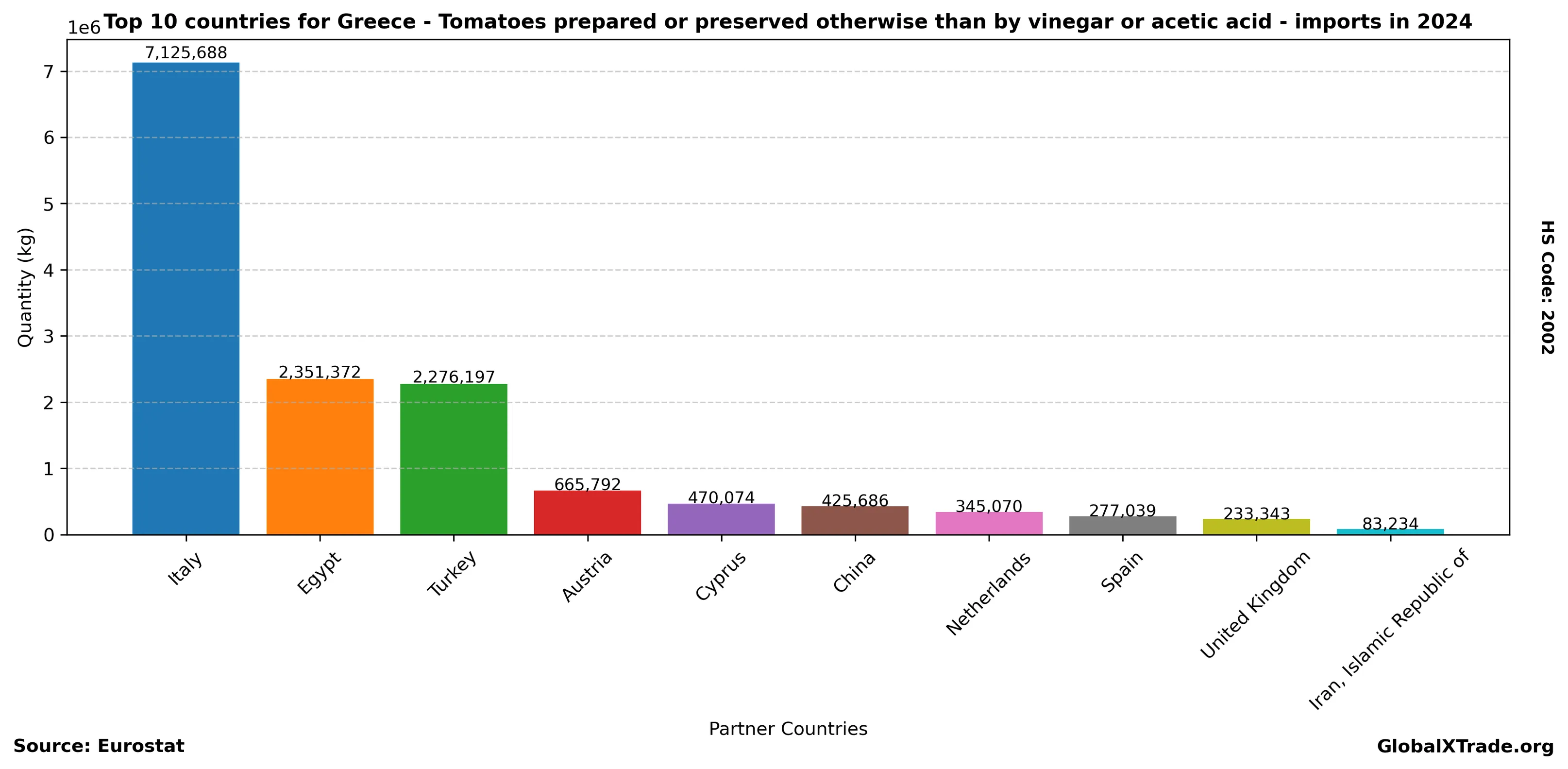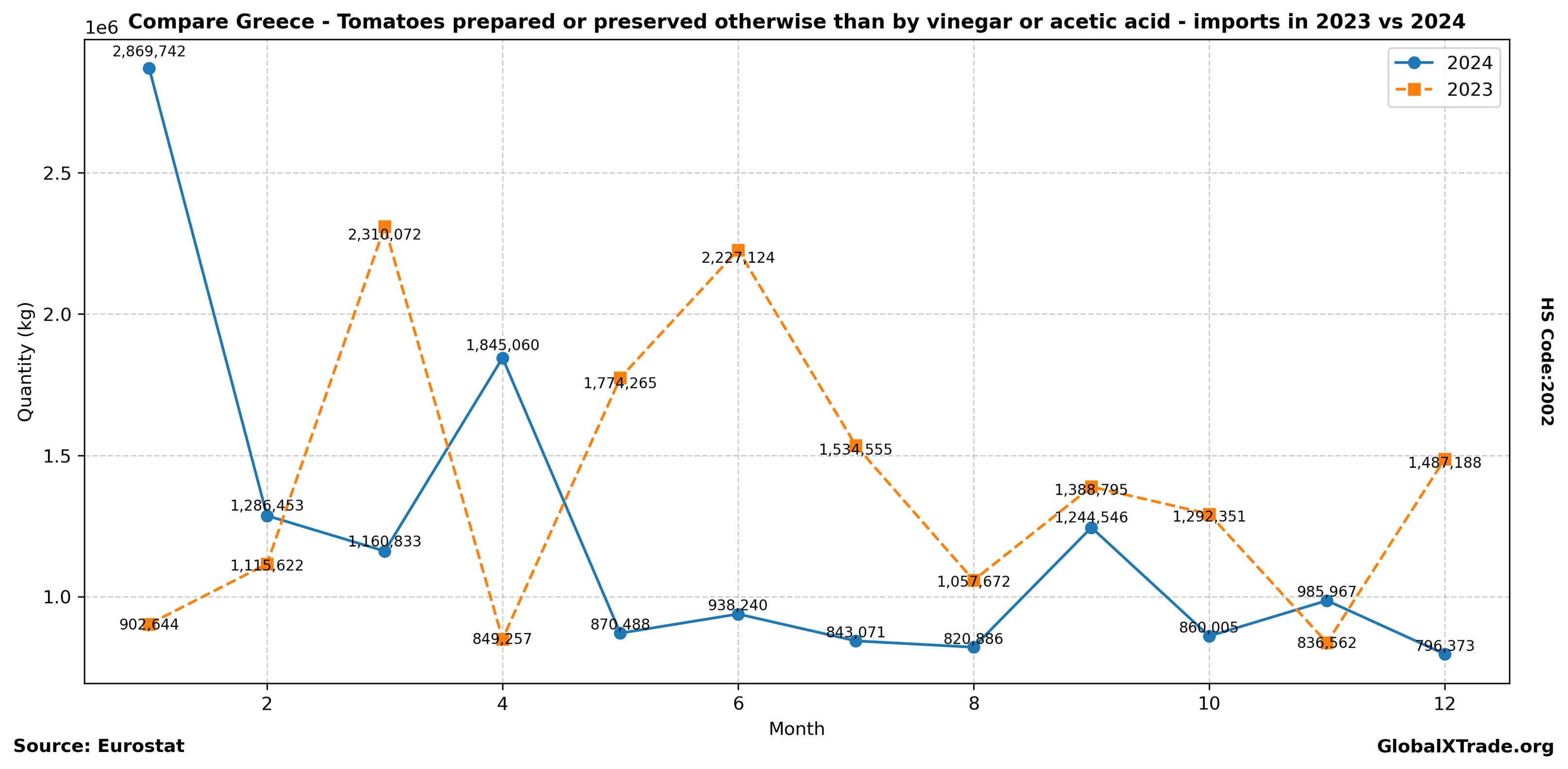 Greece “Tomatoes prepared or preserved otherwise than by vinegar or acetic acid” Imports in 2024