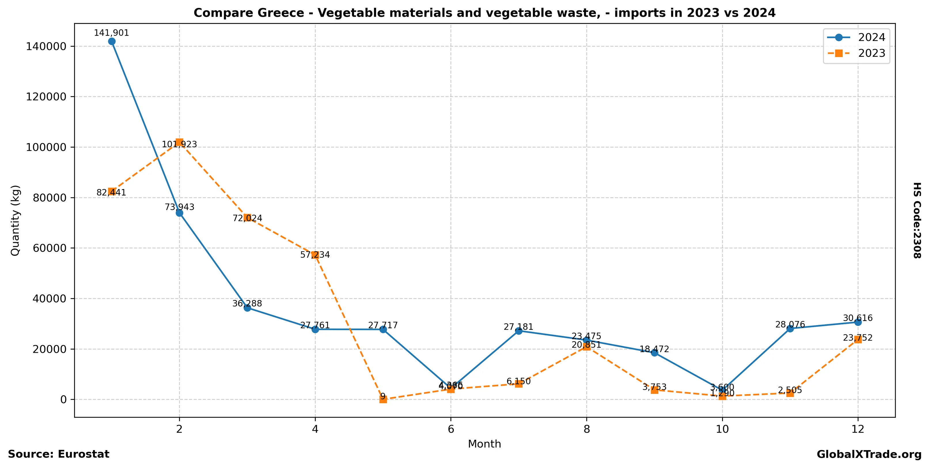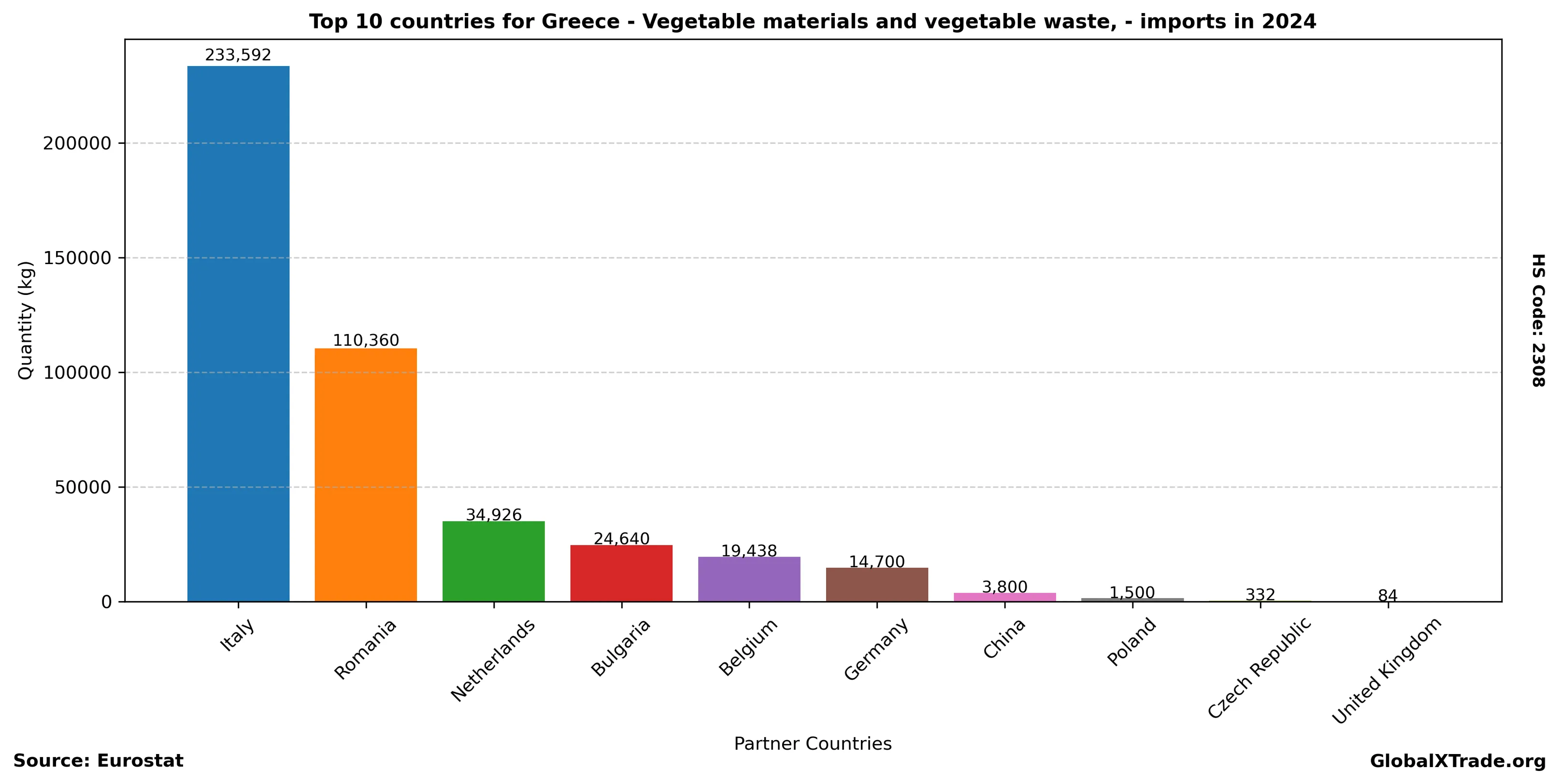 Greece “Vegetable materials and vegetable waste,” Imports in 2024