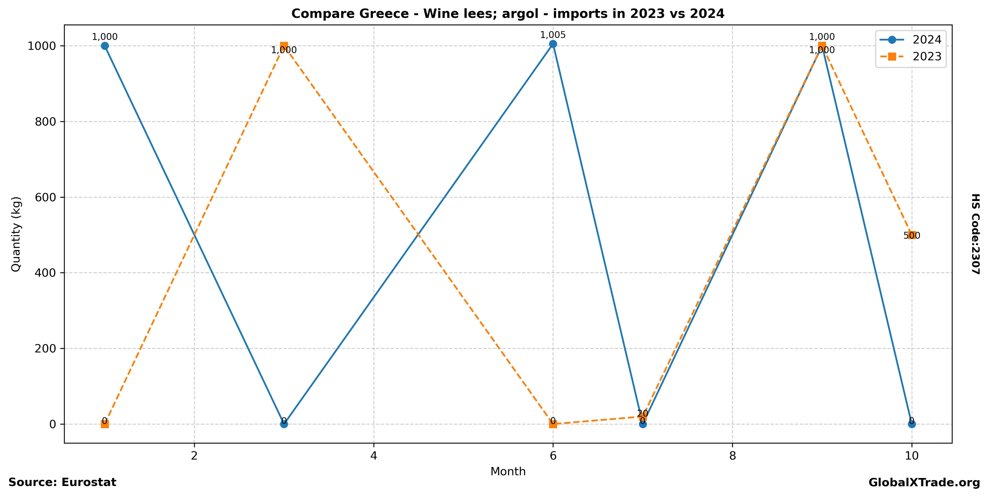 • Greek wine lees imports increase by 12% year-over-year.