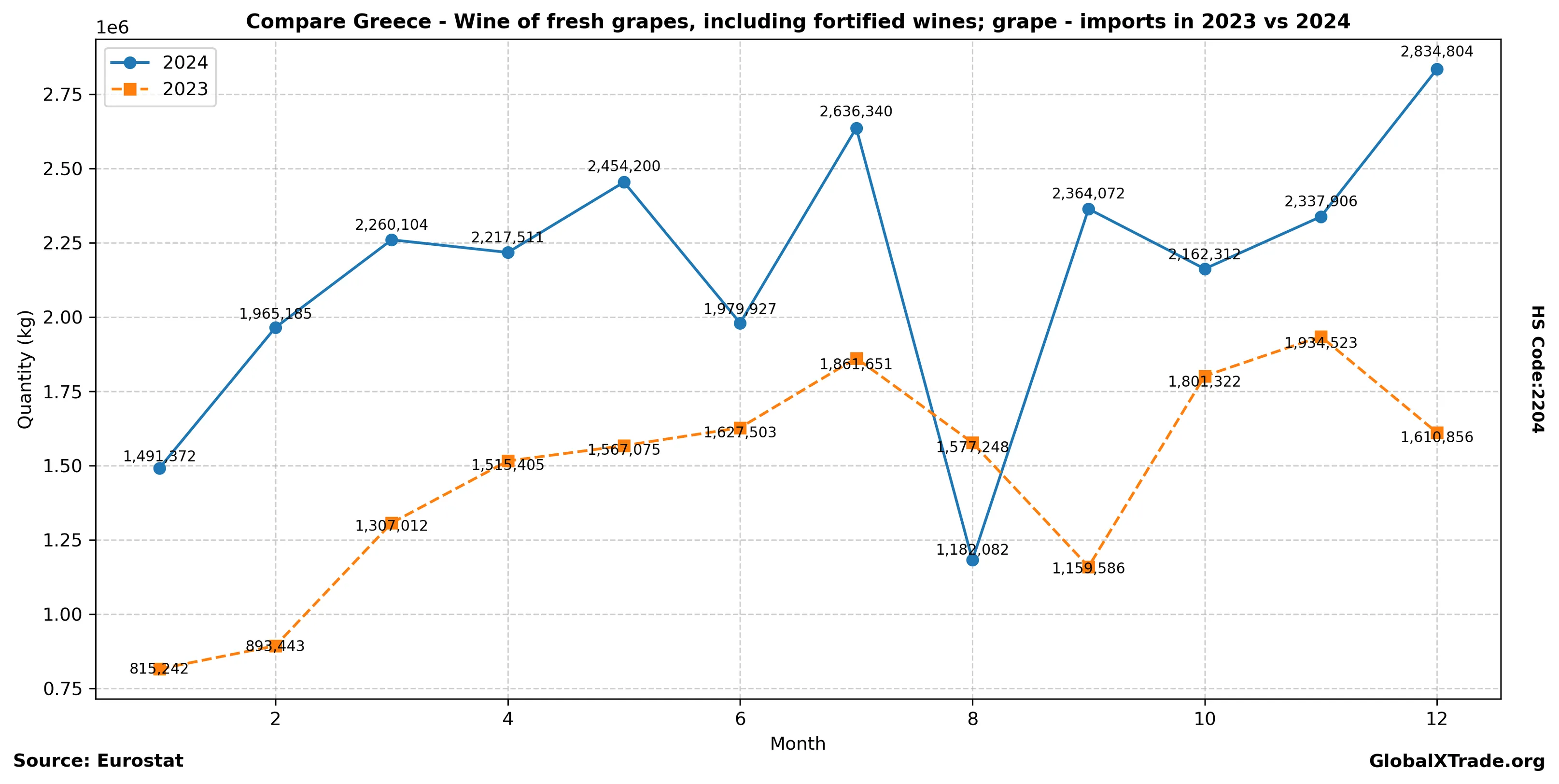 • Greek wine imports to the EU rose 12% in June compared to the same period last year.